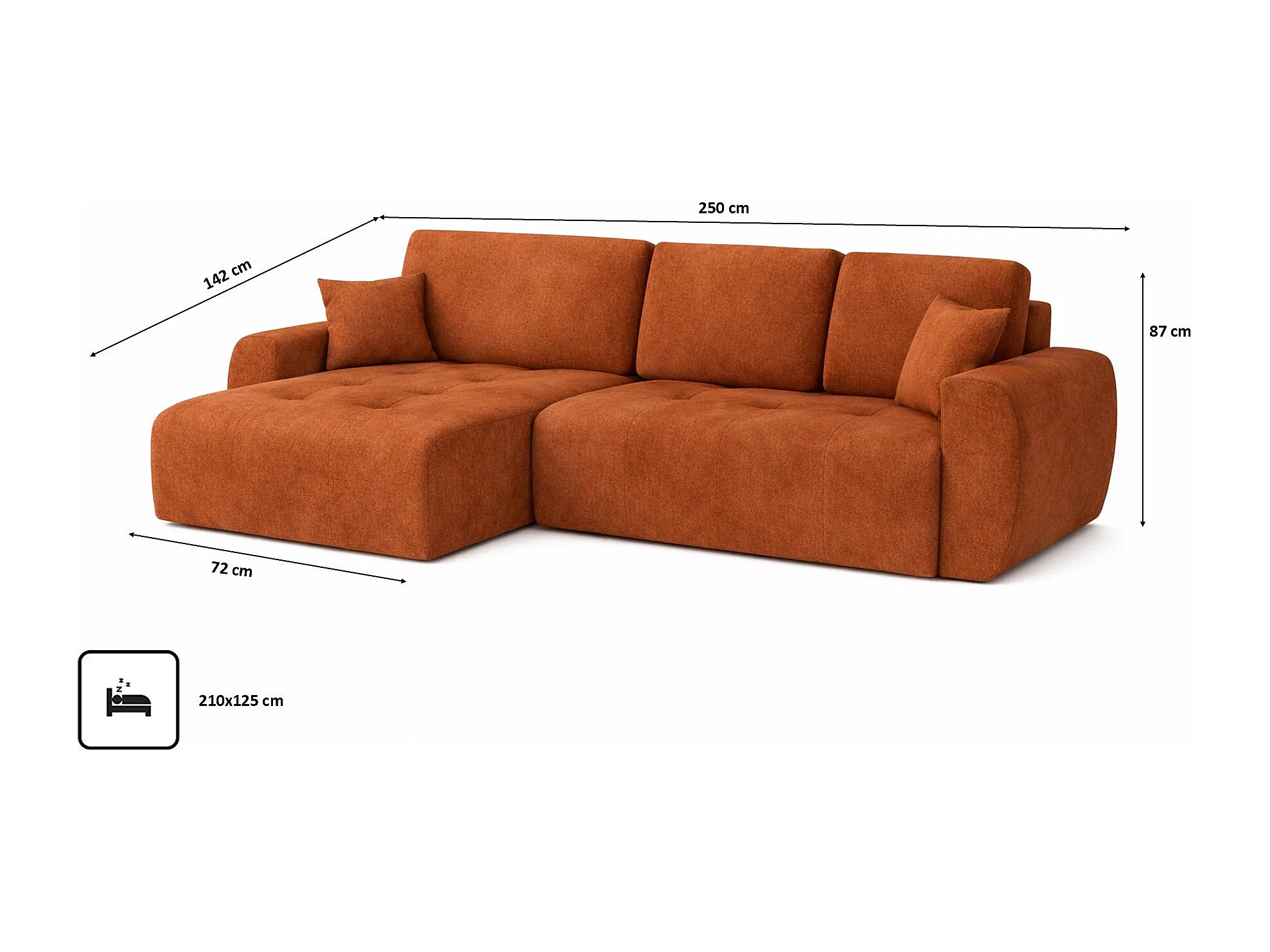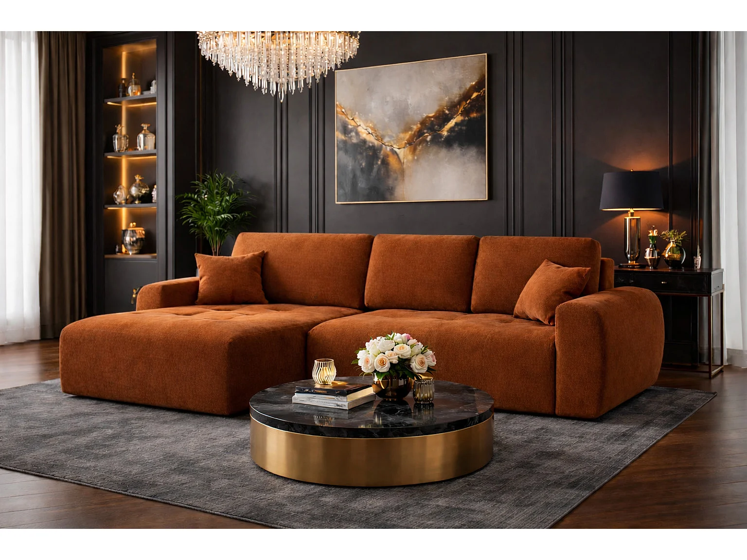 Hoekslaapbank met slaapfunctie en opbergruimte, L-vorm, Ivo L, veloursstof Salvador, Bruin, Links