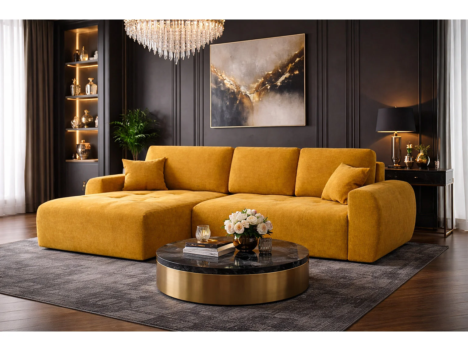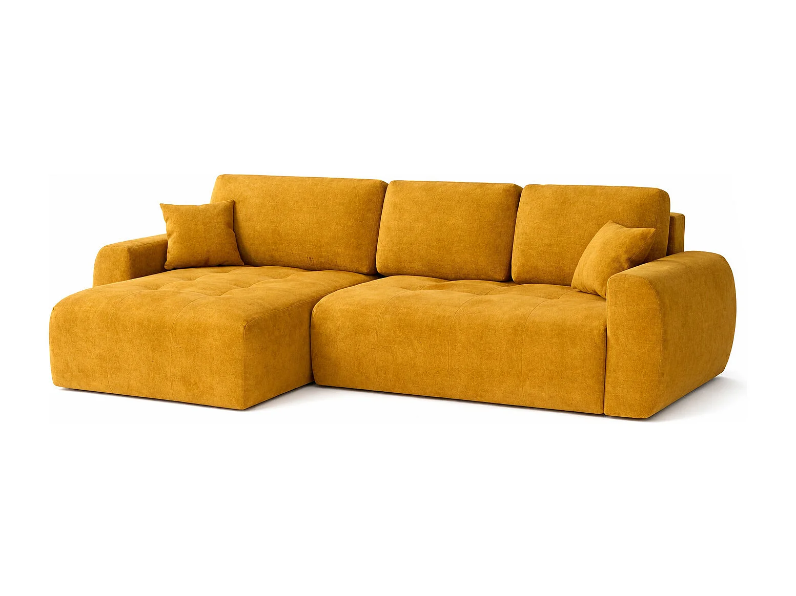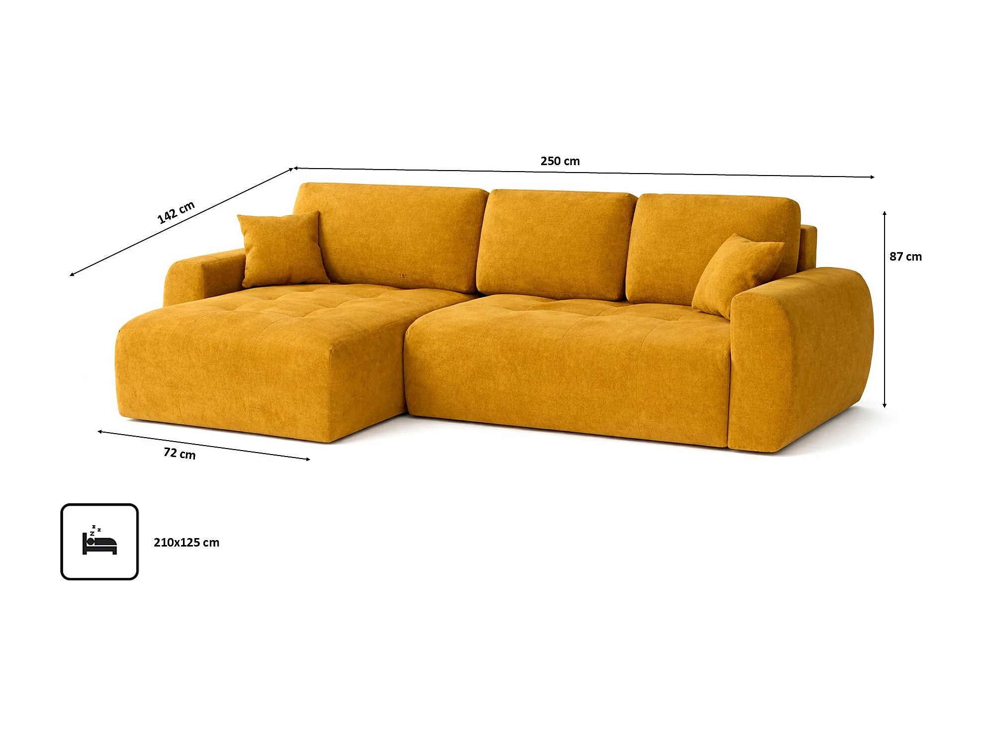 Hoekslaapbank met slaapfunctie en opbergruimte, L-vorm, Ivo L, veloursstof Salvador, Geel, Links
