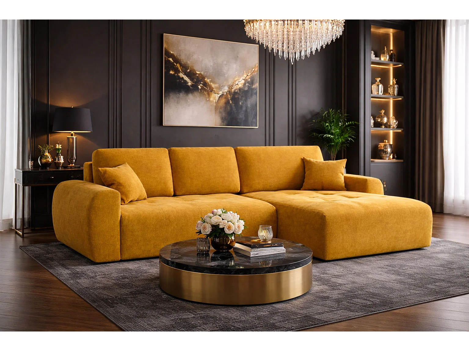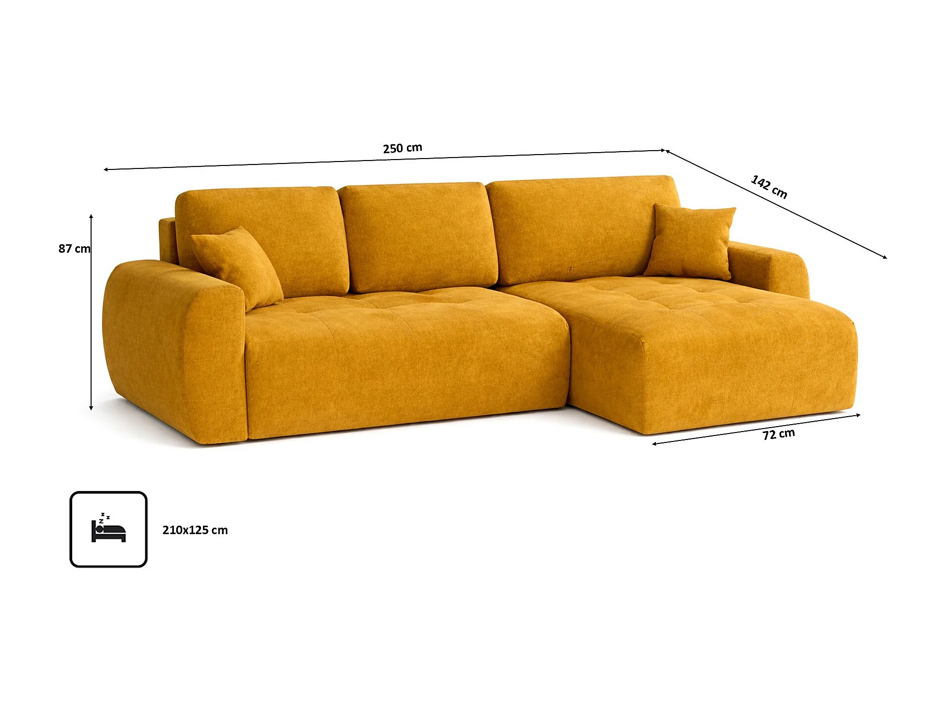 Hoekslaapbank met slaapfunctie en opbergruimte, L-vorm, Ivo L, veloursstof Salvador, Geel, Rechts