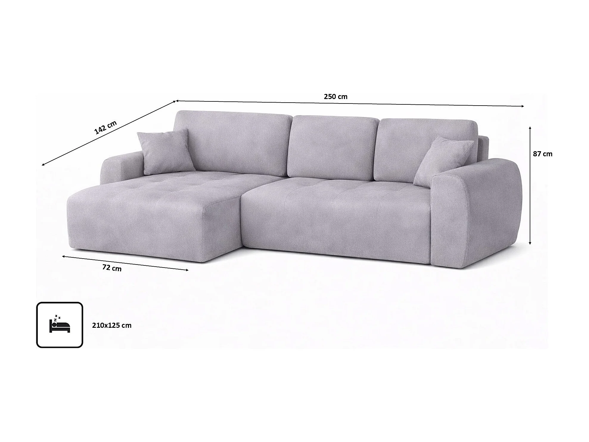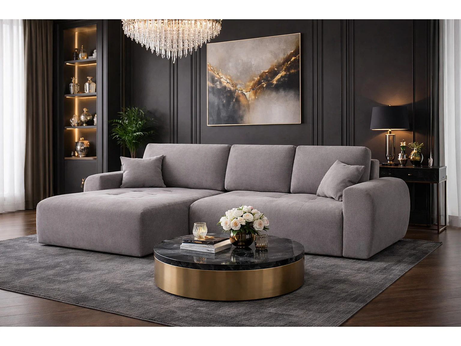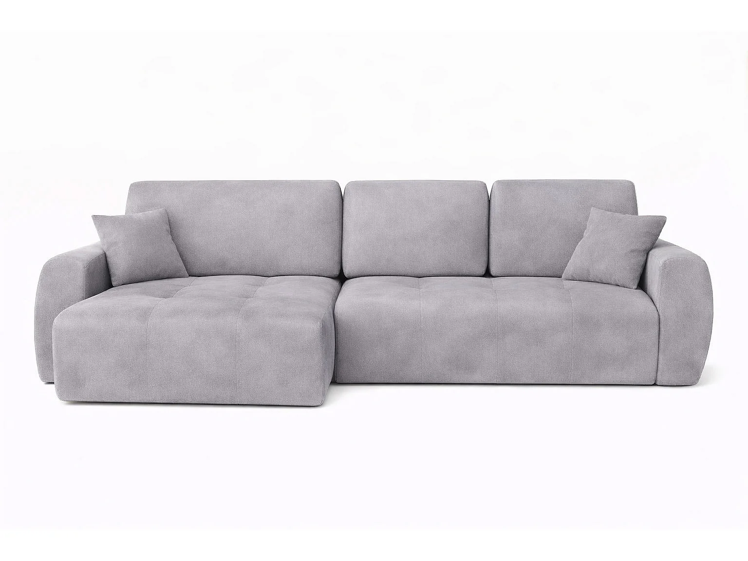 Hoekslaapbank met slaapfunctie en opbergruimte, L-vorm, Ivo L, veloursstof Salvador, Grijs, Links