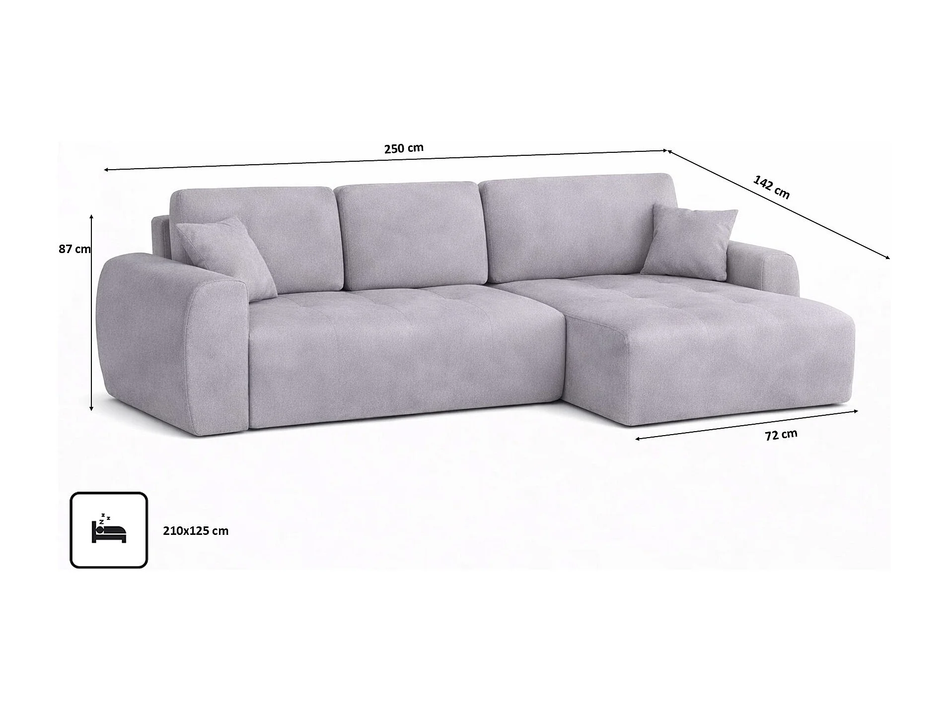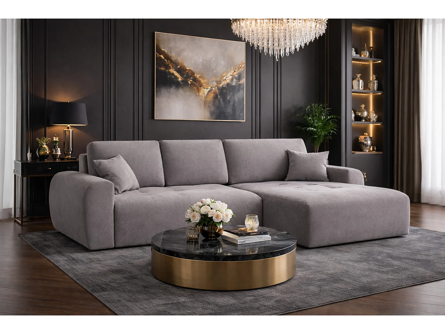 Hoekslaapbank met slaapfunctie en opbergruimte, L-vorm, Ivo L, veloursstof Salvador, Grijs, Rechts