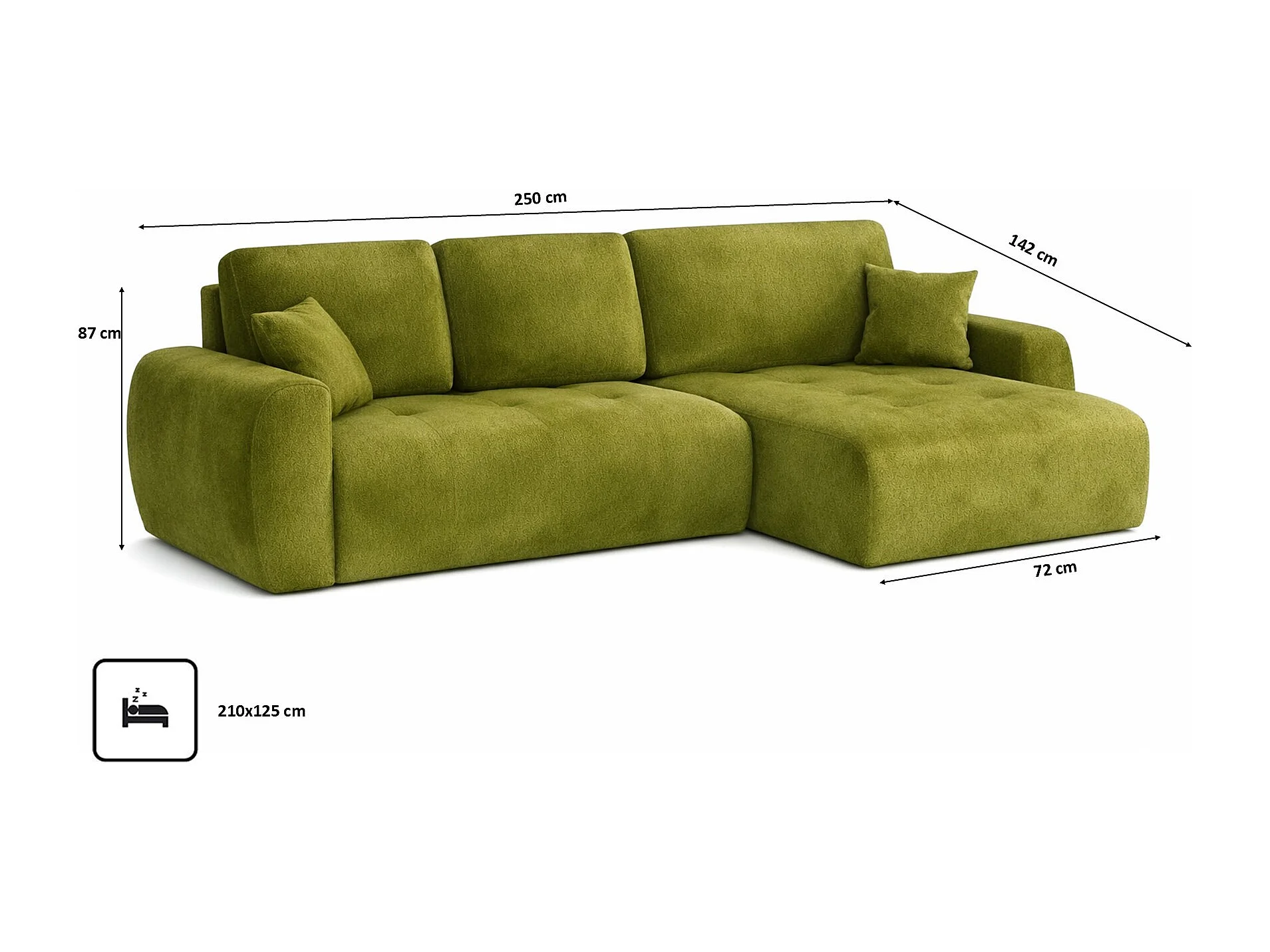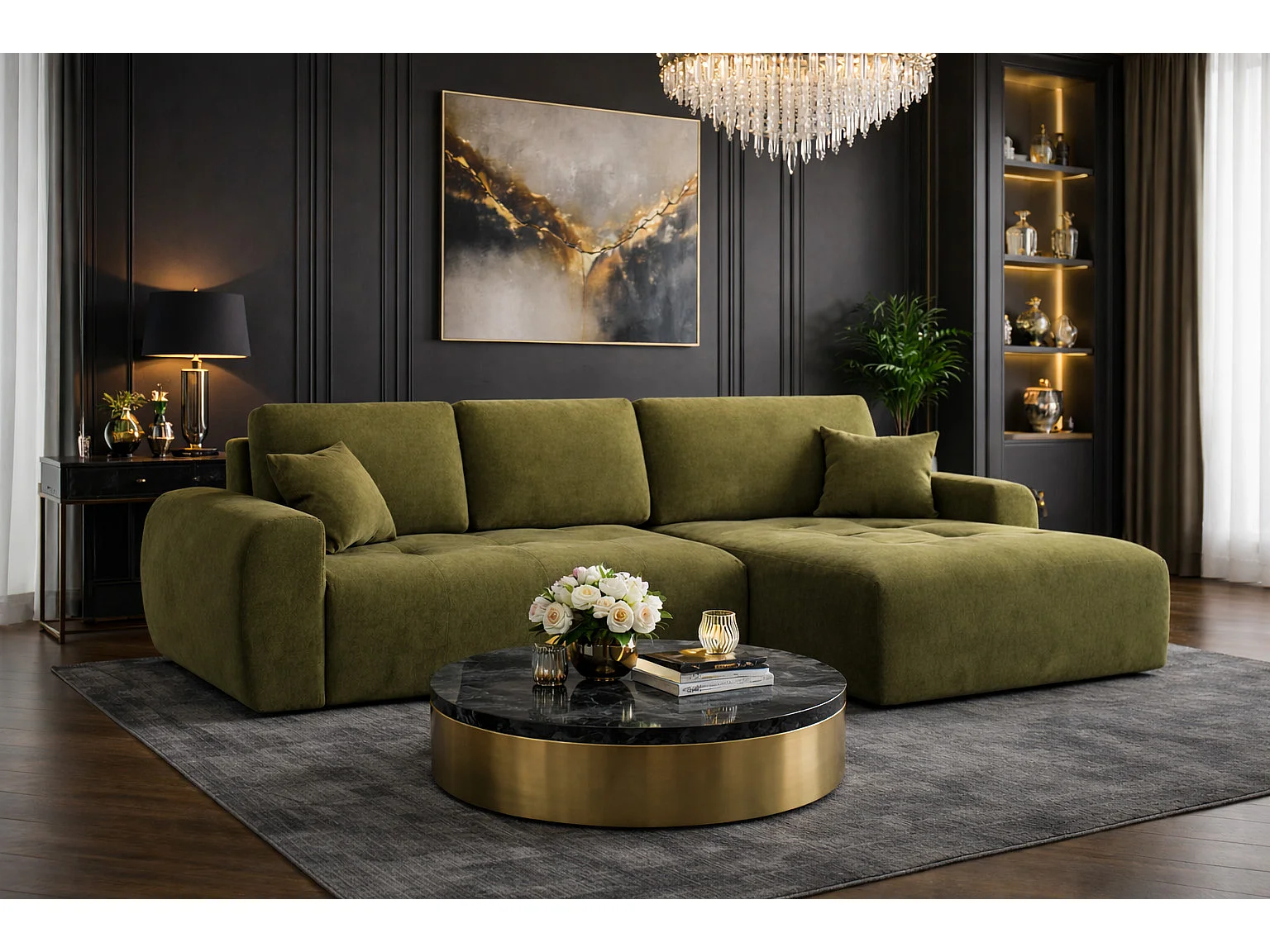 Hoekslaapbank met slaapfunctie en opbergruimte, L-vorm, Ivo L, veloursstof Salvador, Olijfgroen, Rechts