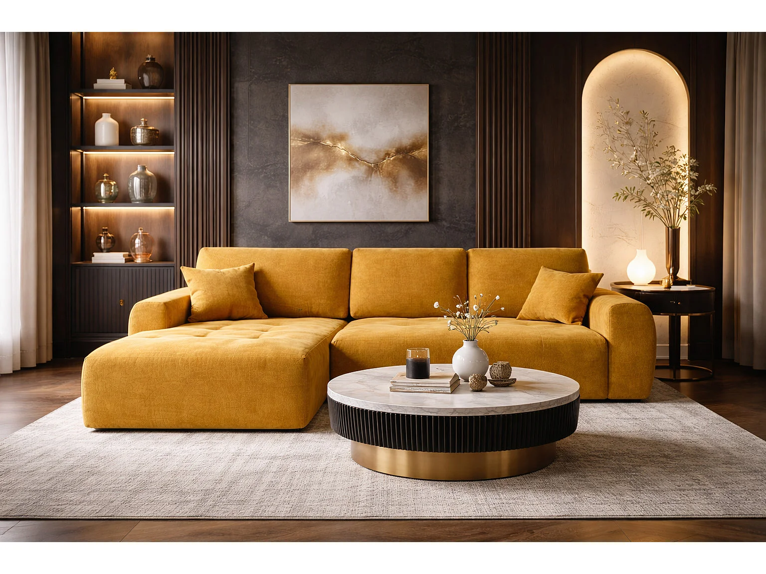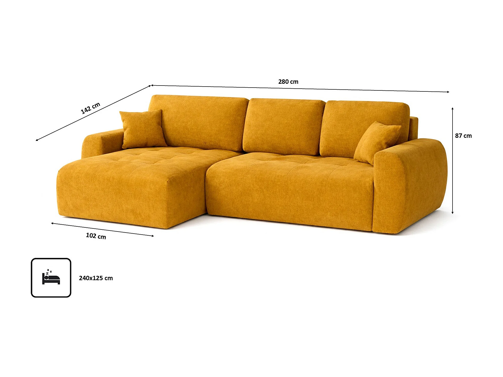 Hoekslaapbank met slaapfunctie en opbergruimte, L-vorm, Ivo XL, veloursstof Salvador, Geel, Links