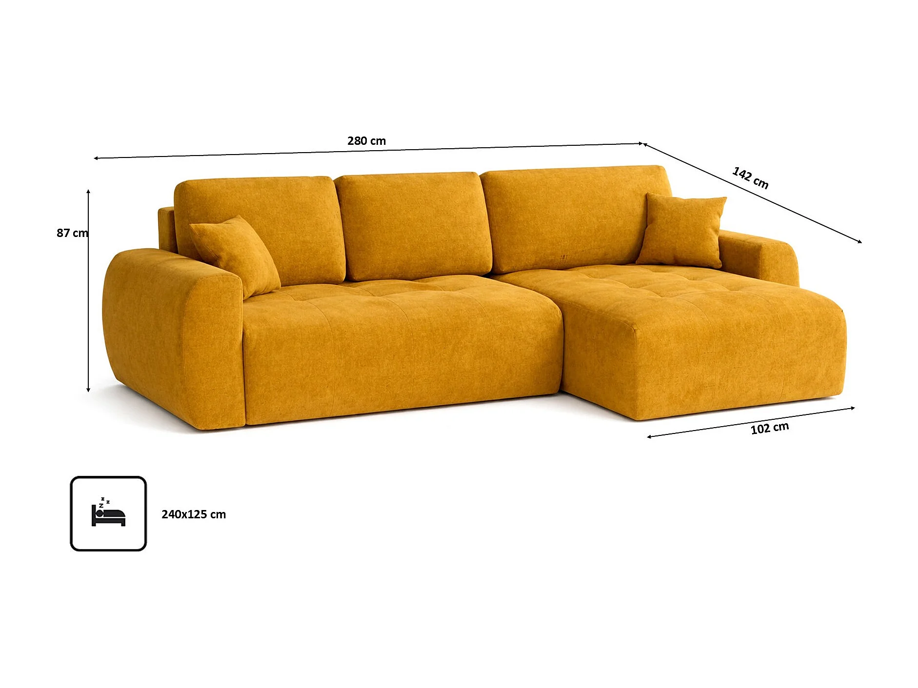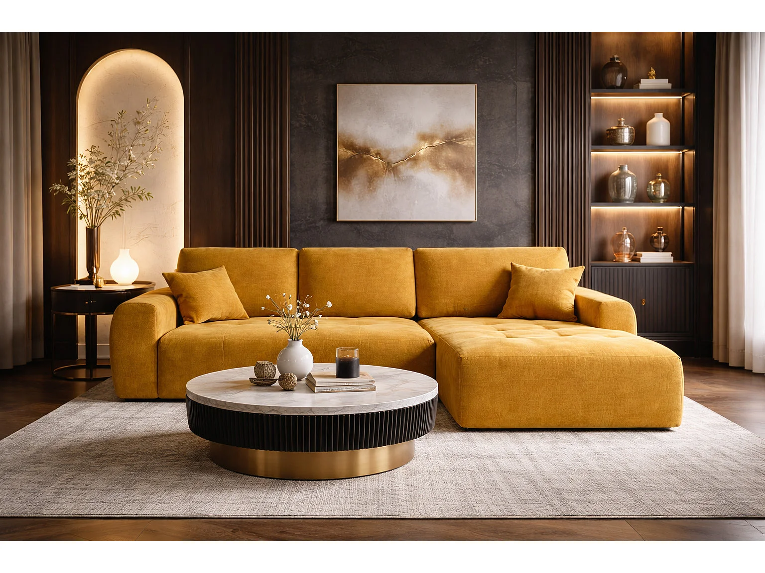 Hoekslaapbank met slaapfunctie en opbergruimte, L-vorm, Ivo XL, veloursstof Salvador, Geel, Rechts