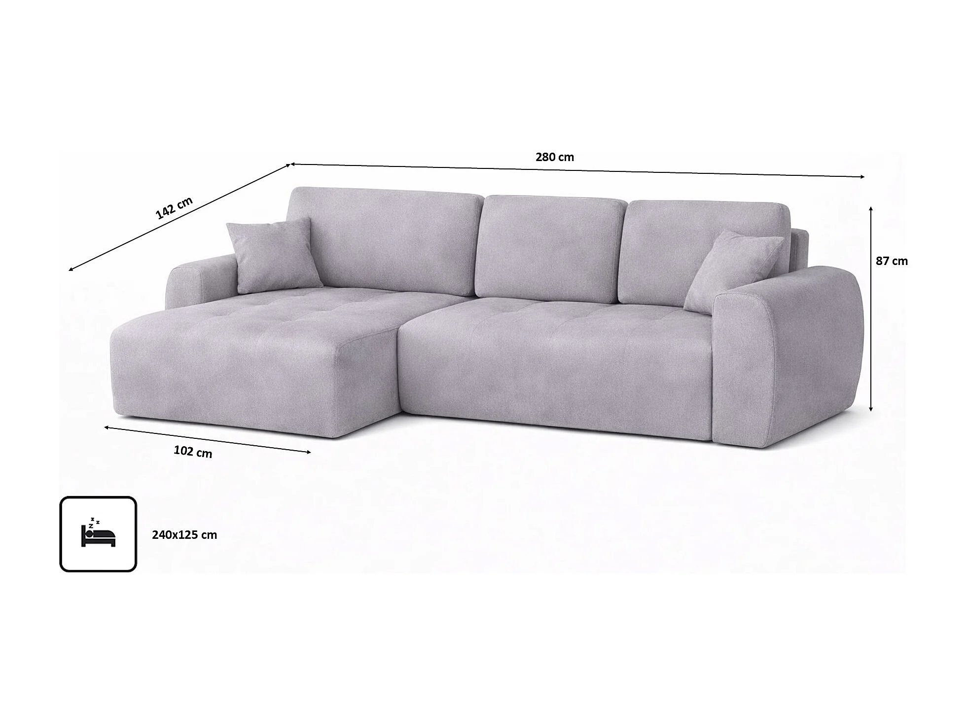 Hoekslaapbank met slaapfunctie en opbergruimte, L-vorm, Ivo XL, veloursstof Salvador, Grijs, Links