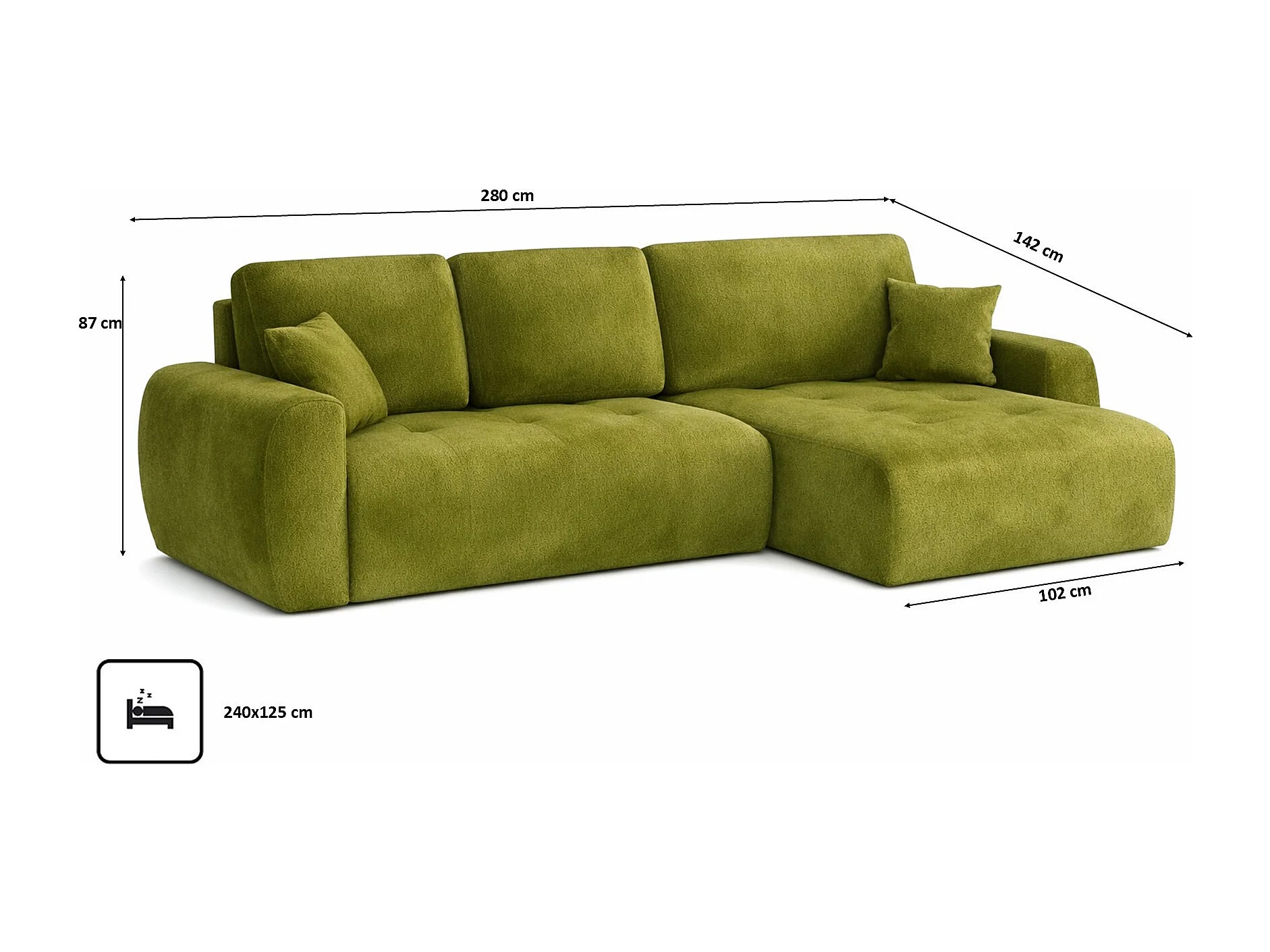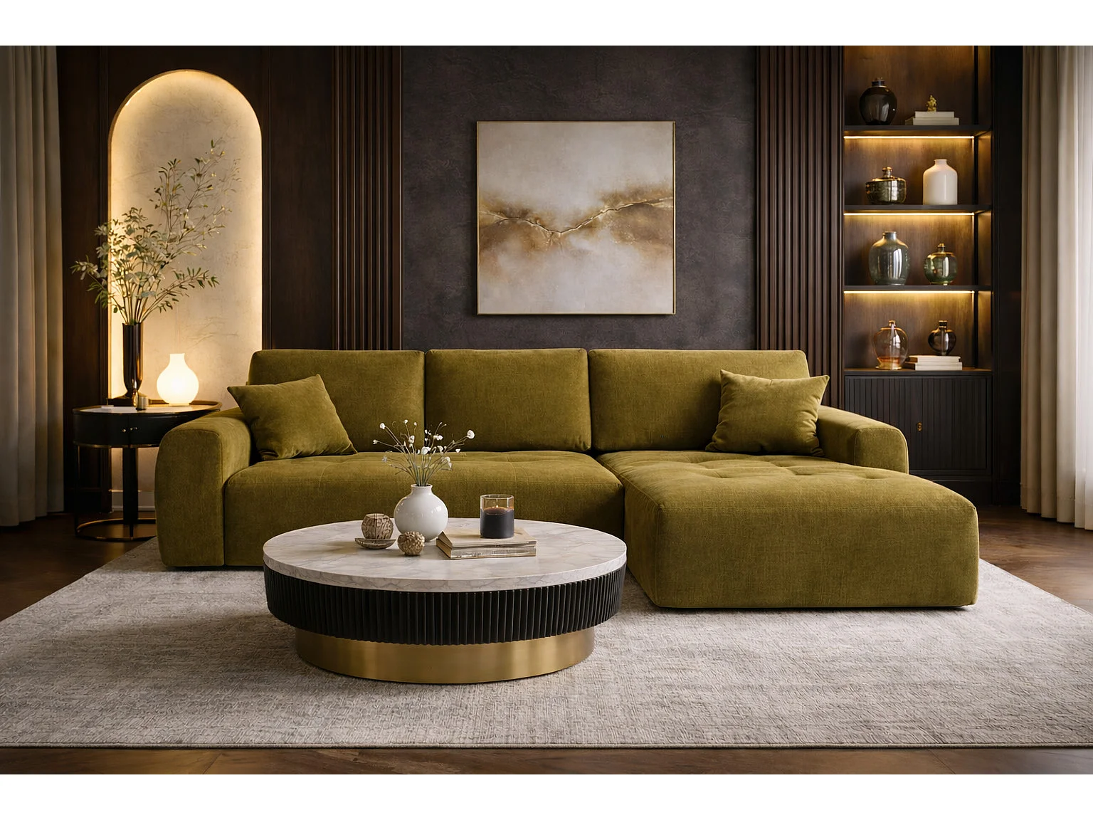 Hoekslaapbank met slaapfunctie en opbergruimte, L-vorm, Ivo XL, veloursstof Salvador, Olijfgroen, Rechts