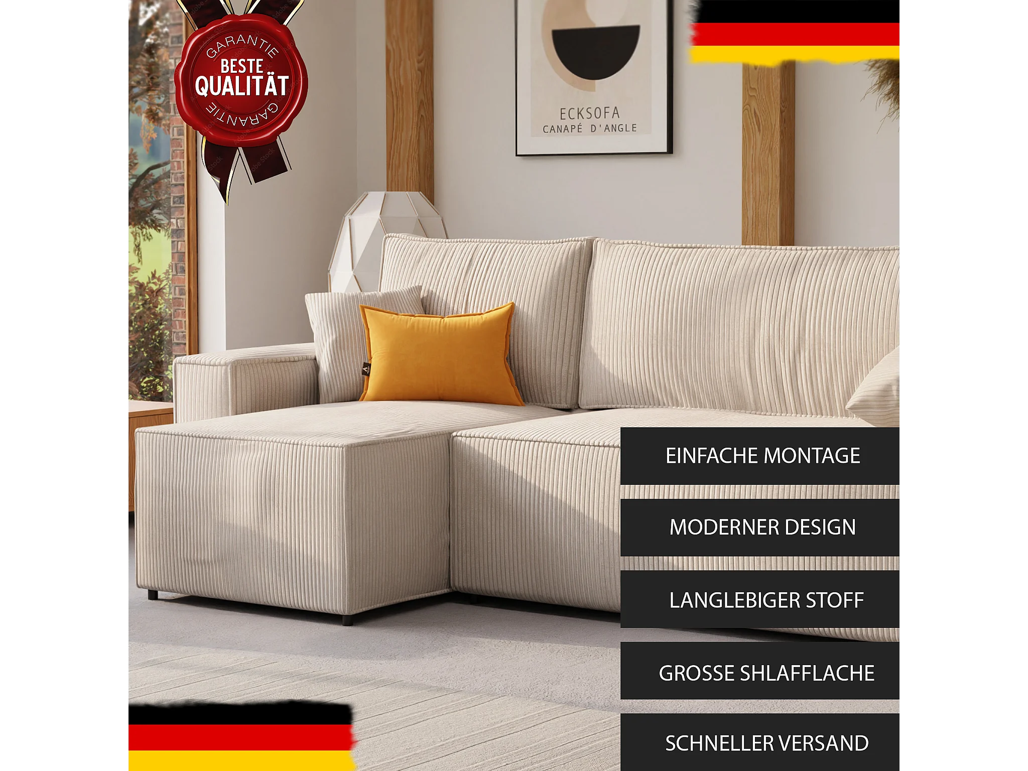 Hoekslaapbank Parijs omkeerbaar om te bouwen tot beige stoffen.