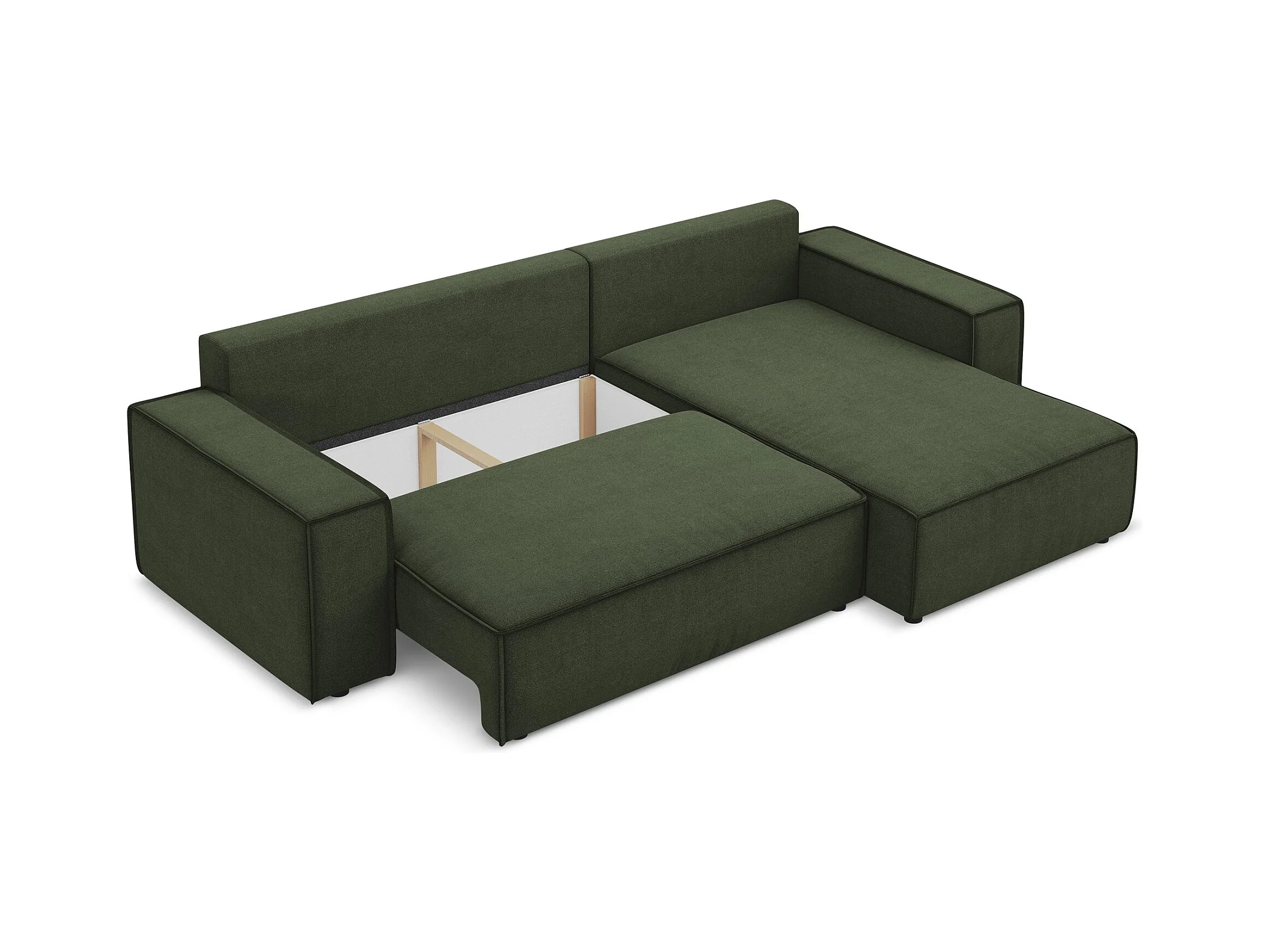 Hoekslaapbank rechts van olijf textuurstof - KIMO