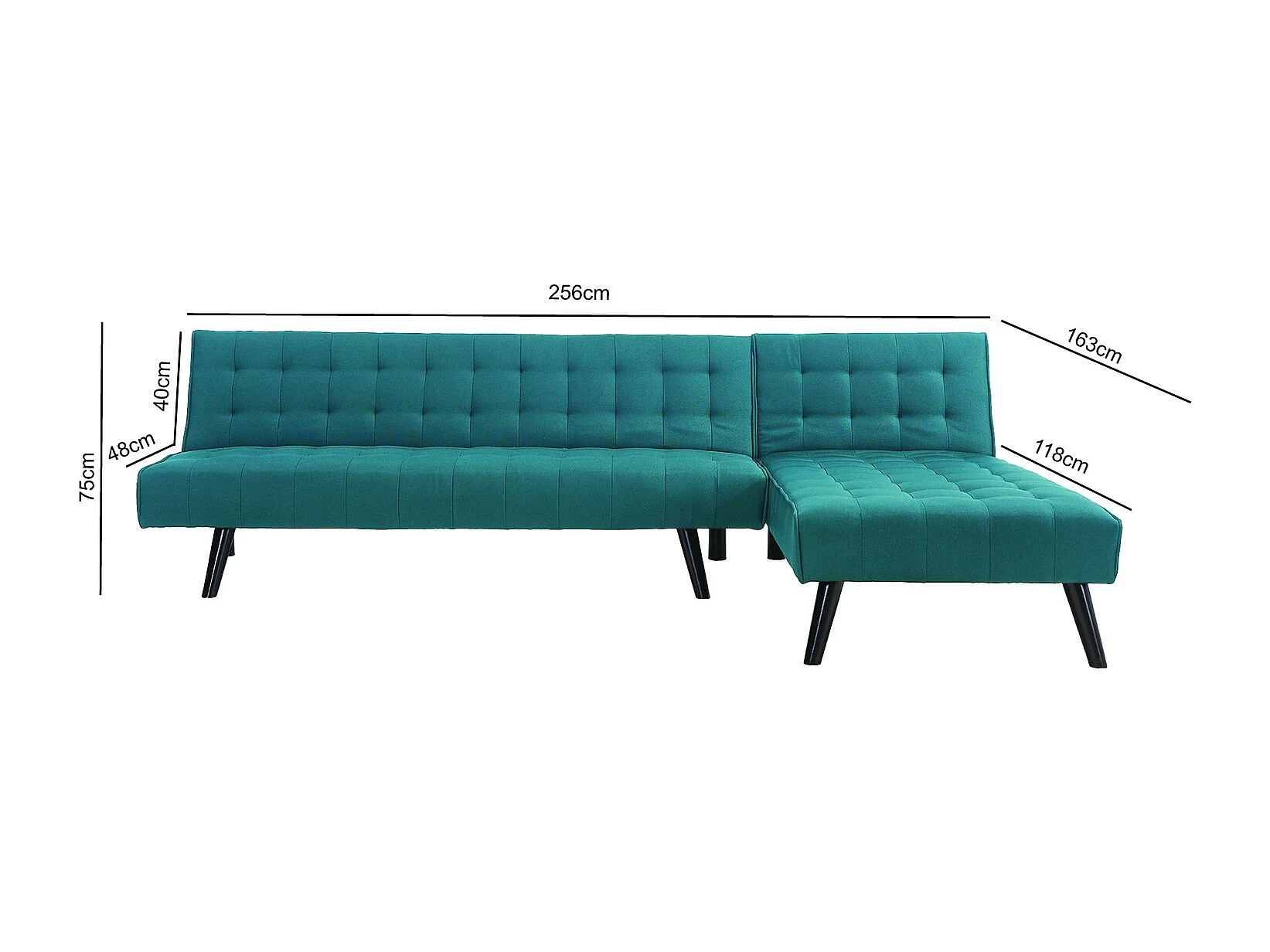 Hoekslaapbank TIM voor 4 personen in eendblauwe stof - Elegant en modern, ideaal voor familie en gasten