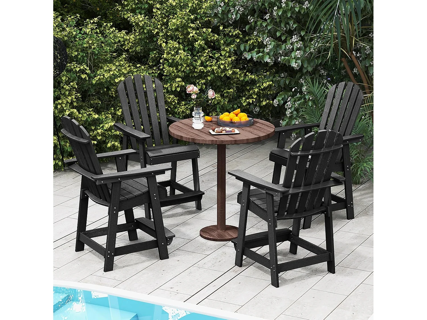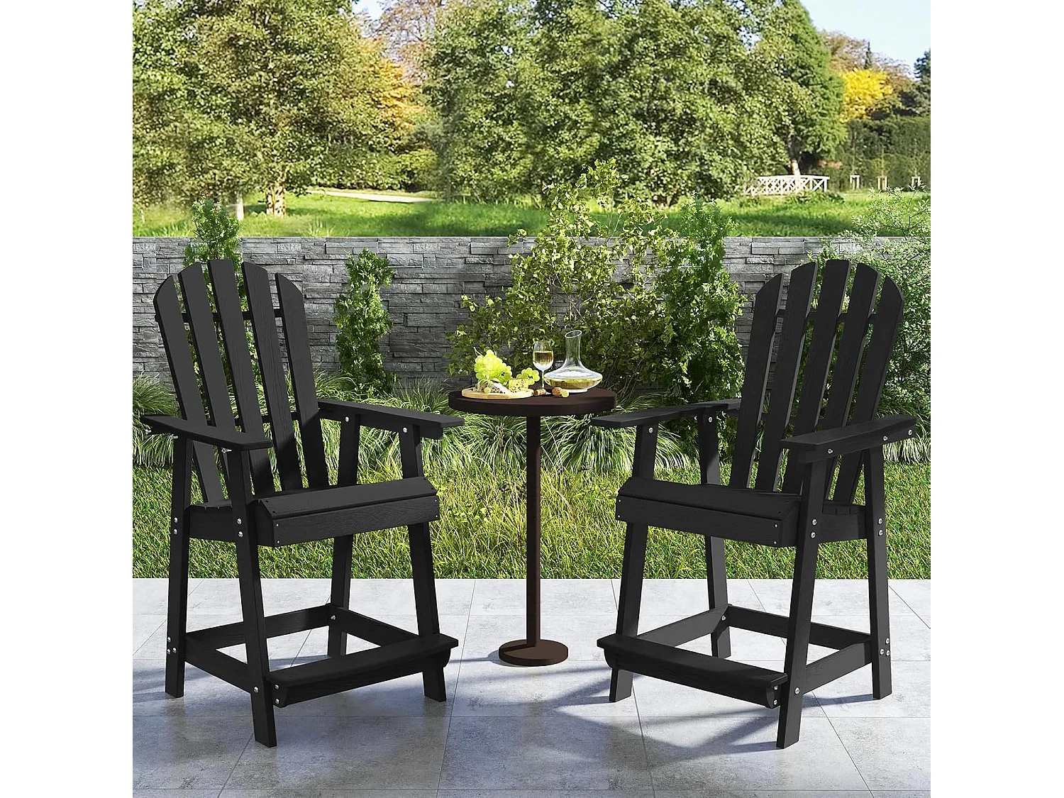 Hoge Adirondack stoel met voetensteun, weerbestendige barkruk van HDPE, balkonstoel met armleuning, outdoor Adirondack stoel voor tuin, terras (zwart)ZB33793