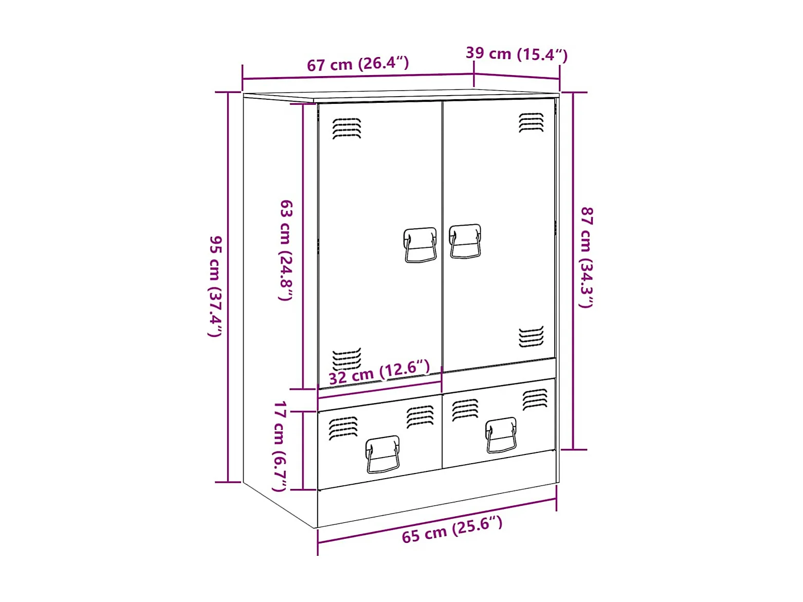 Hoge kast 67x39x95 cm staal mosterdgeel