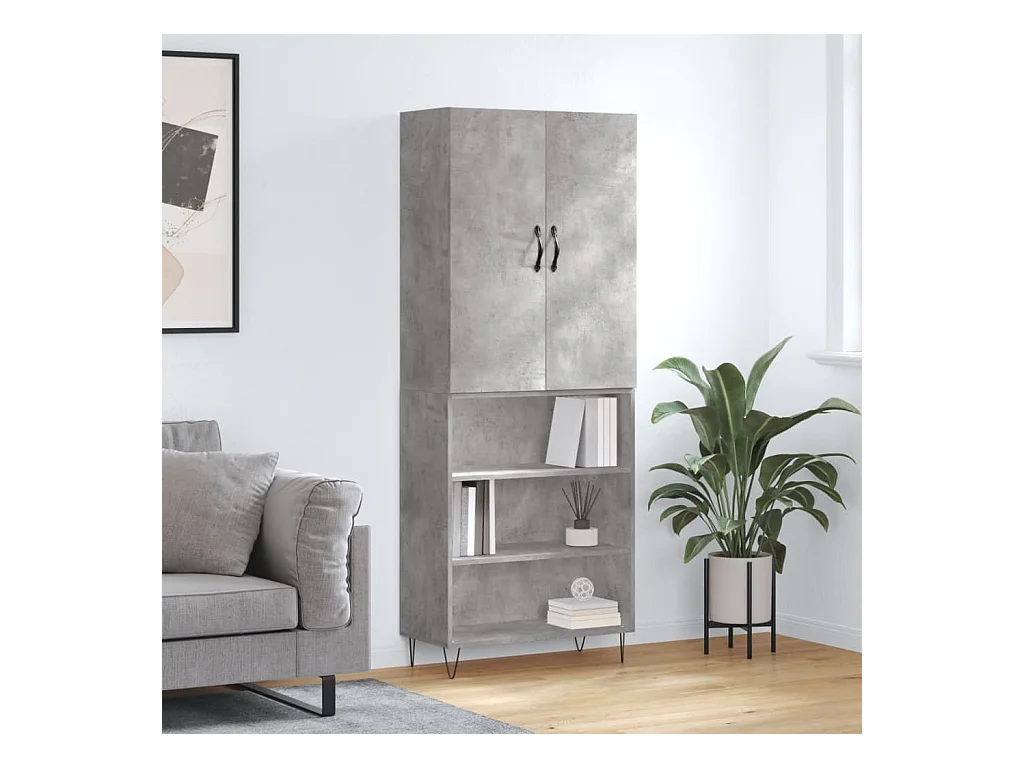 Hoge kast 69,5x34x180 cm bewerkt hout betongrijs
