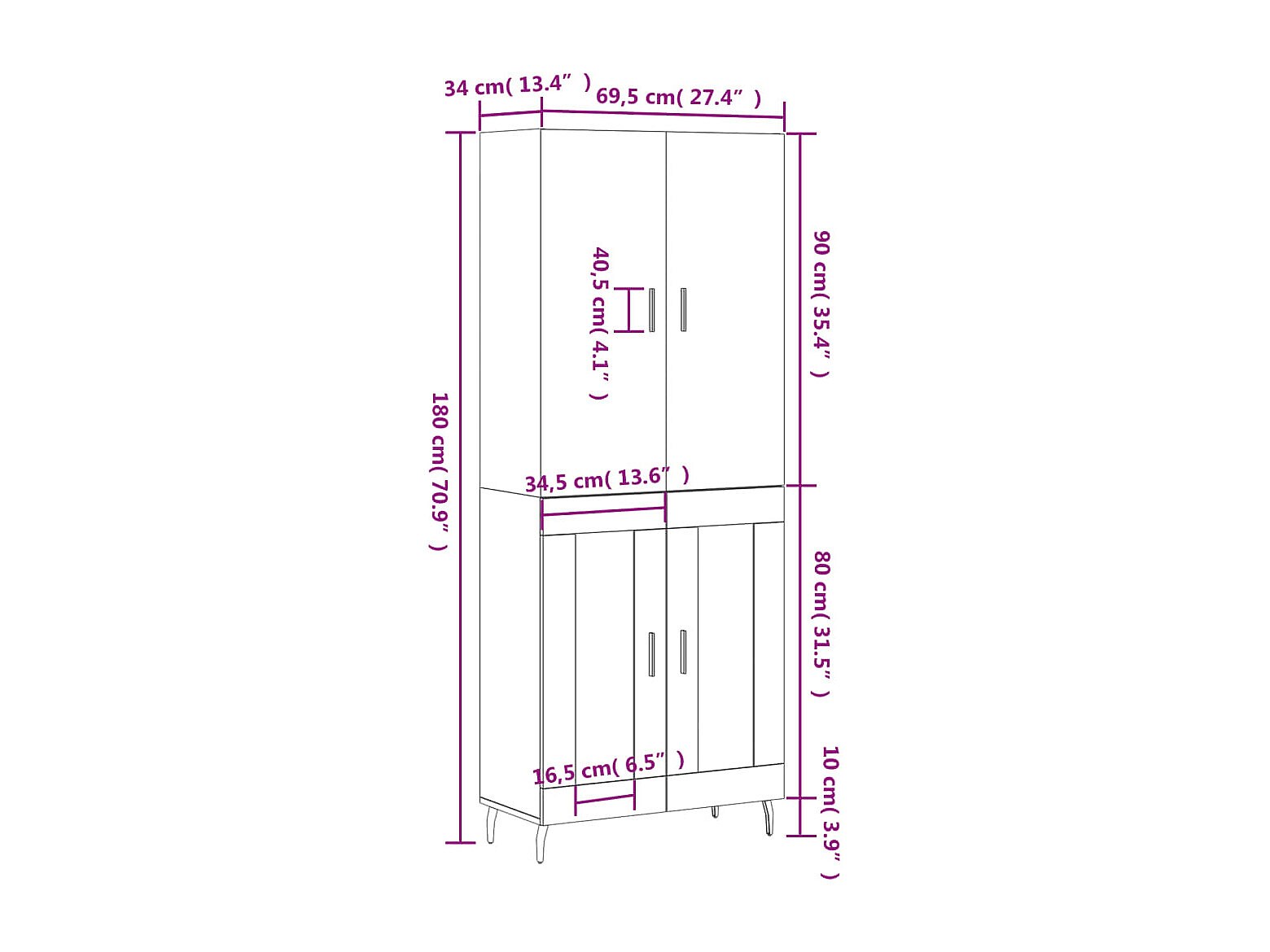 Hoge kast 69,5x34x180 cm bewerkt hout grijs sonoma eikenkleurig