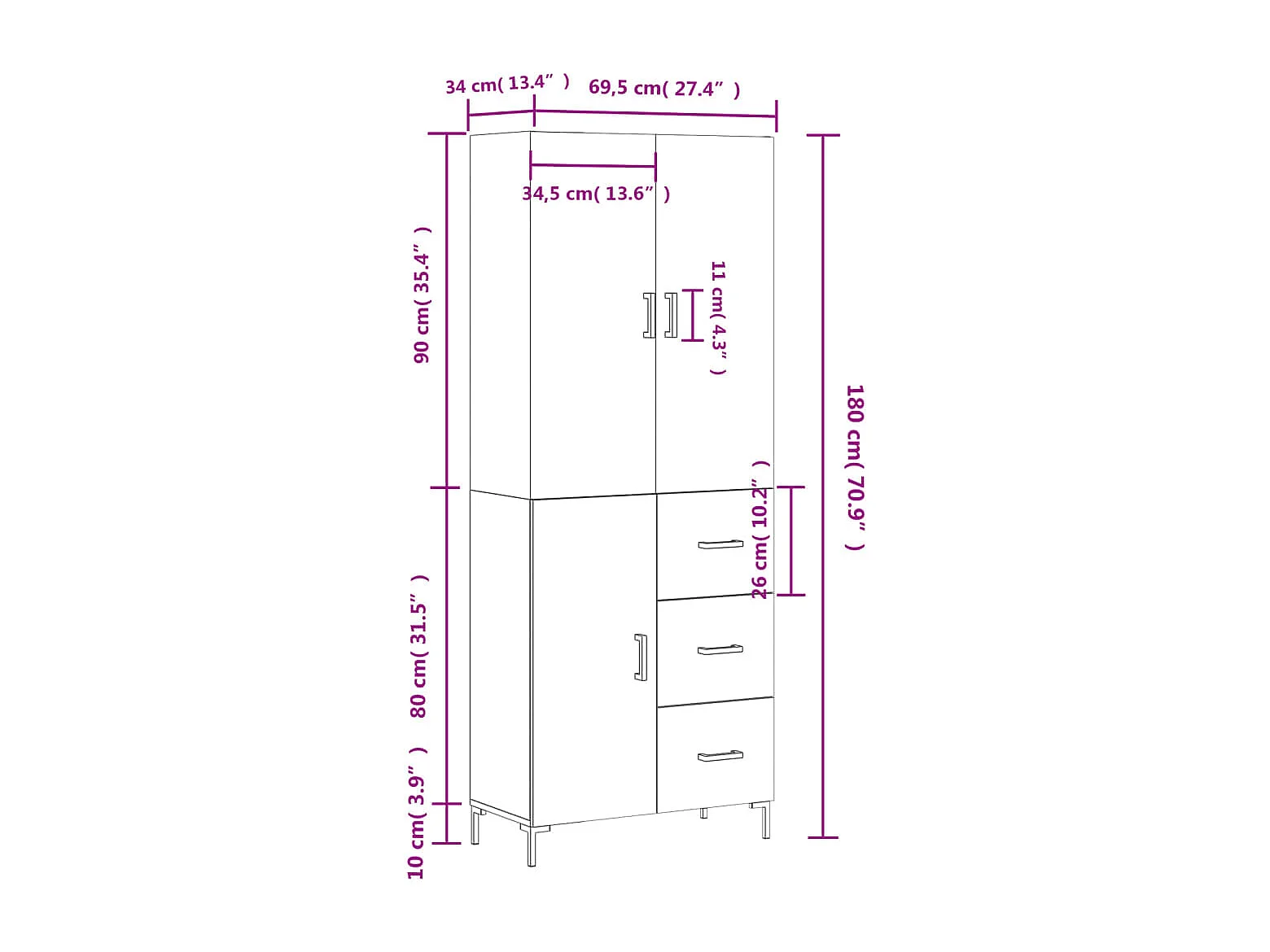 Hoge kast 69,5x34x180 cm bewerkt hout grijs sonoma eikenkleurig