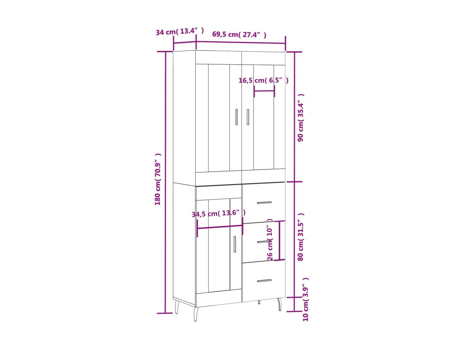 Hoge kast 69,5x34x180 cm bewerkt hout grijs sonoma eikenkleurig
