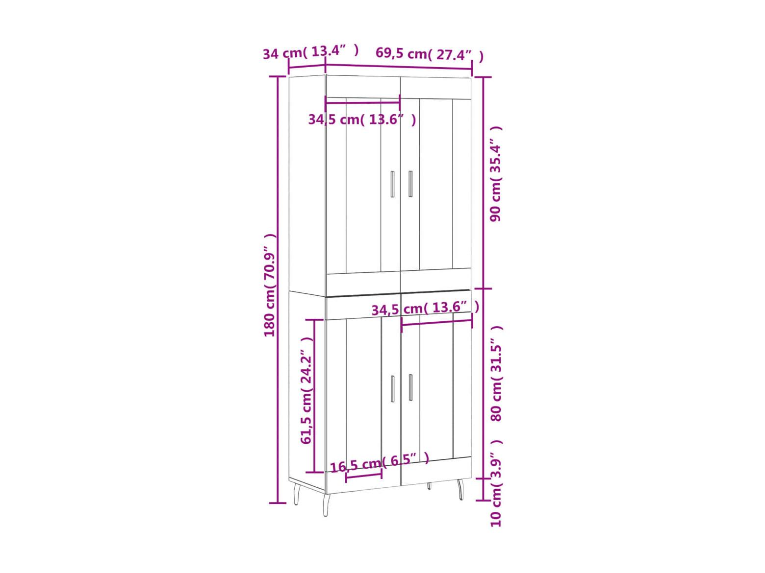 Hoge kast 69,5x34x180 cm bewerkt hout sonoma eikenkleurig