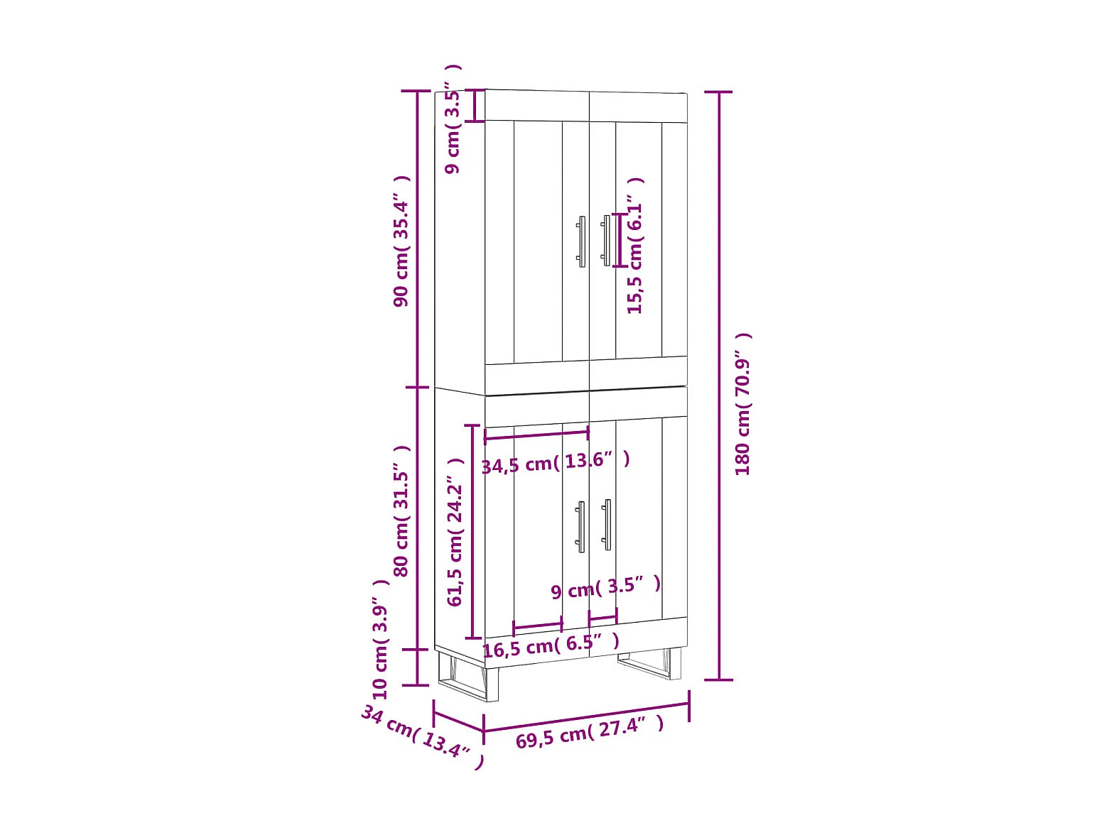 Hoge kast 69,5x34x180 cm bewerkt hout gerookt eikenkleurig