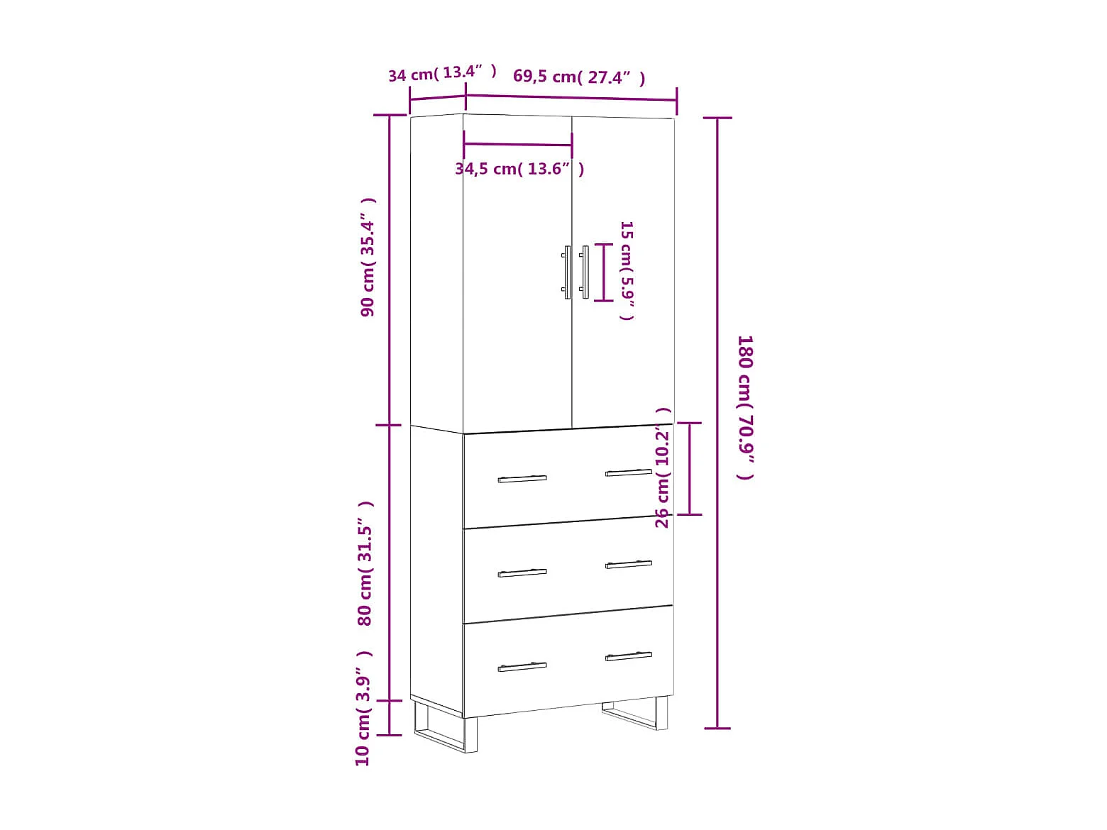 Hoge kast 69,5x34x180 cm bewerkt hout gerookt eikenkleurig