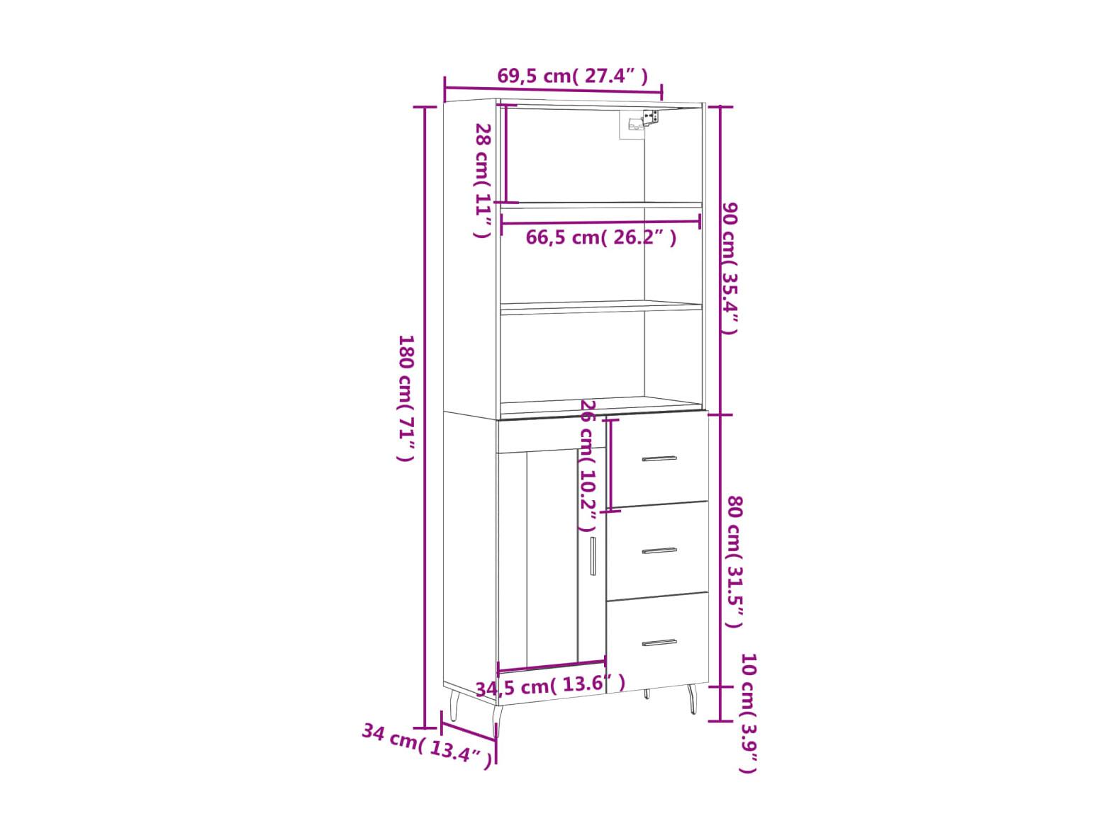 Hoge kast 69,5x34x180 cm bewerkt hout sonoma eikenkleurig