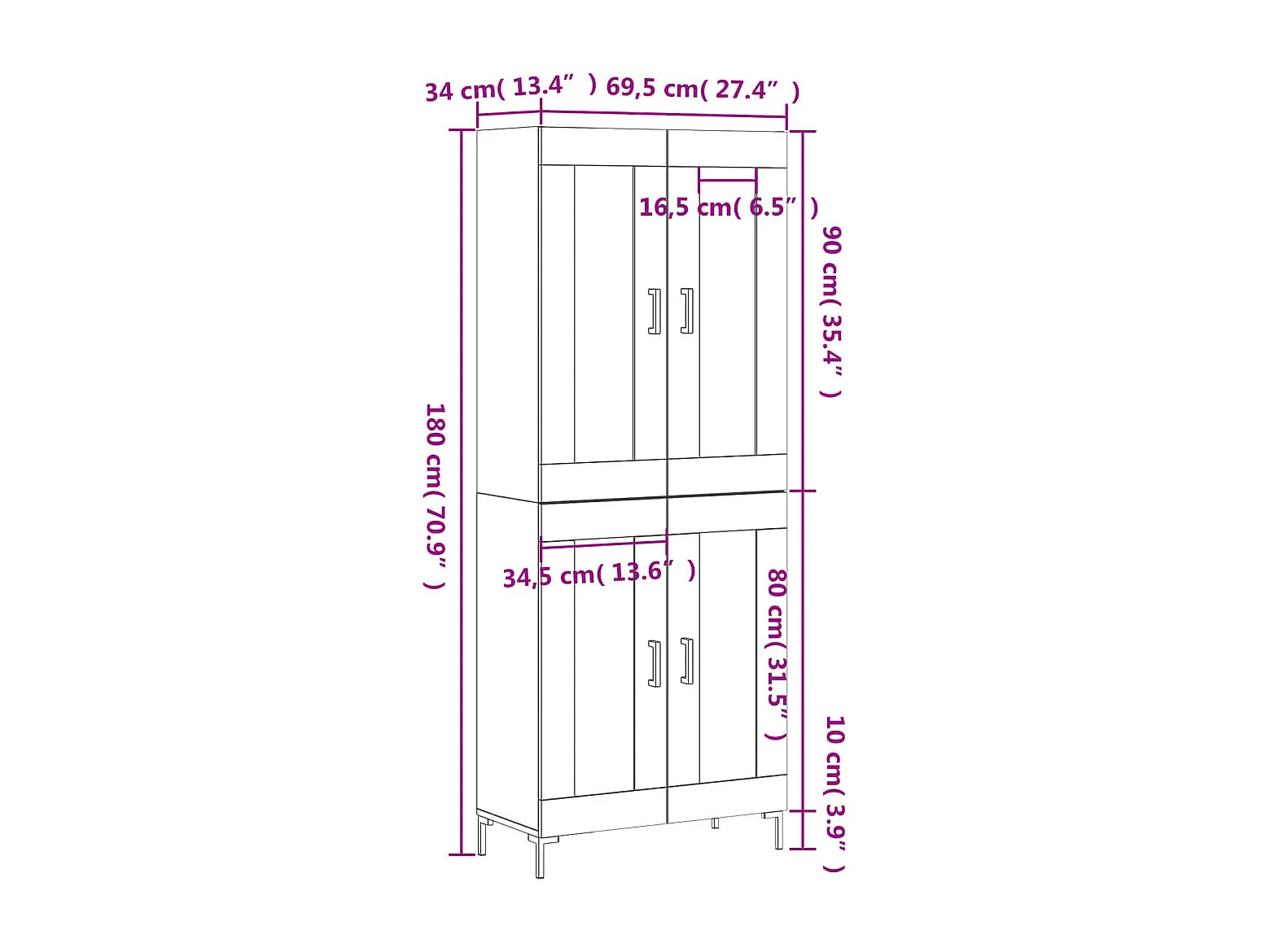 Hoge kast 69,5x34x180 cm bewerkt hout sonoma eikenkleurig