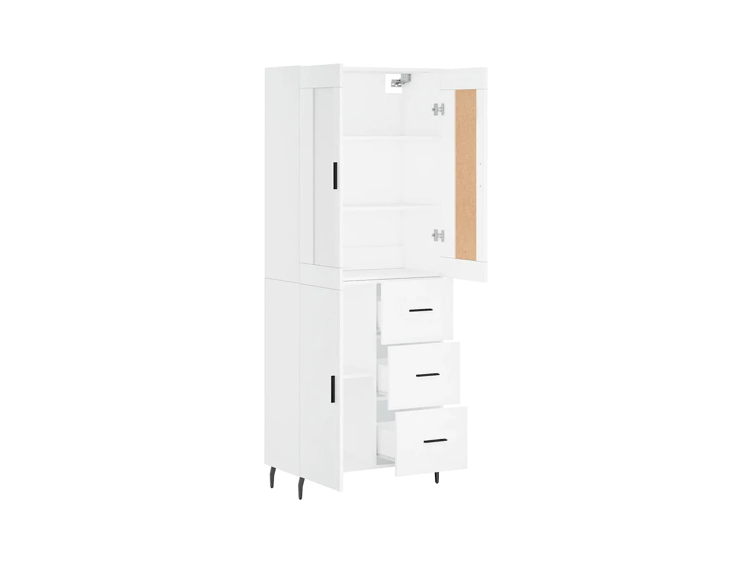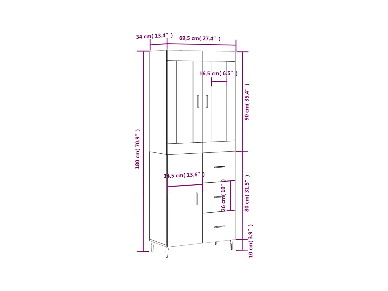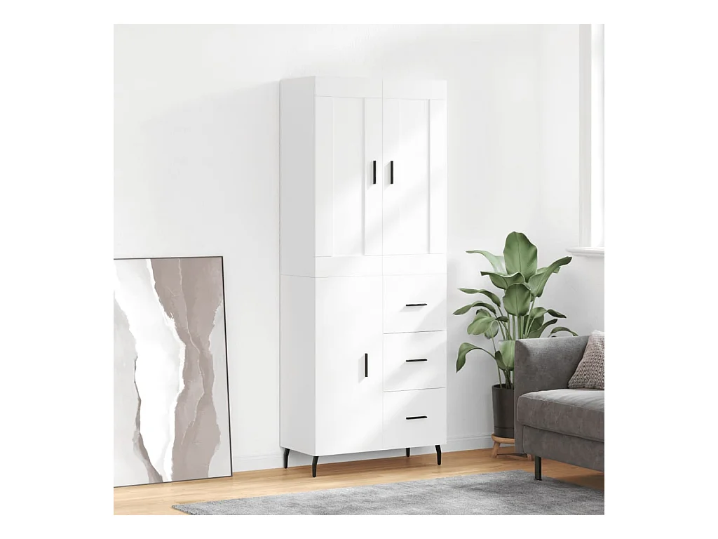 Hoge kast 69,5x34x180 cm bewerkt hout wit