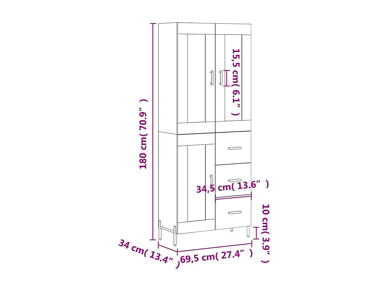 Hoge kast 69,5x34x180 cm bewerkt hout zwart