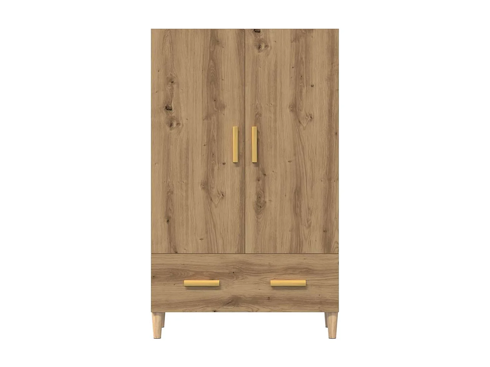 Hoge kast 70x31x115 cm bewerkt hout artisanaal eikenkleur