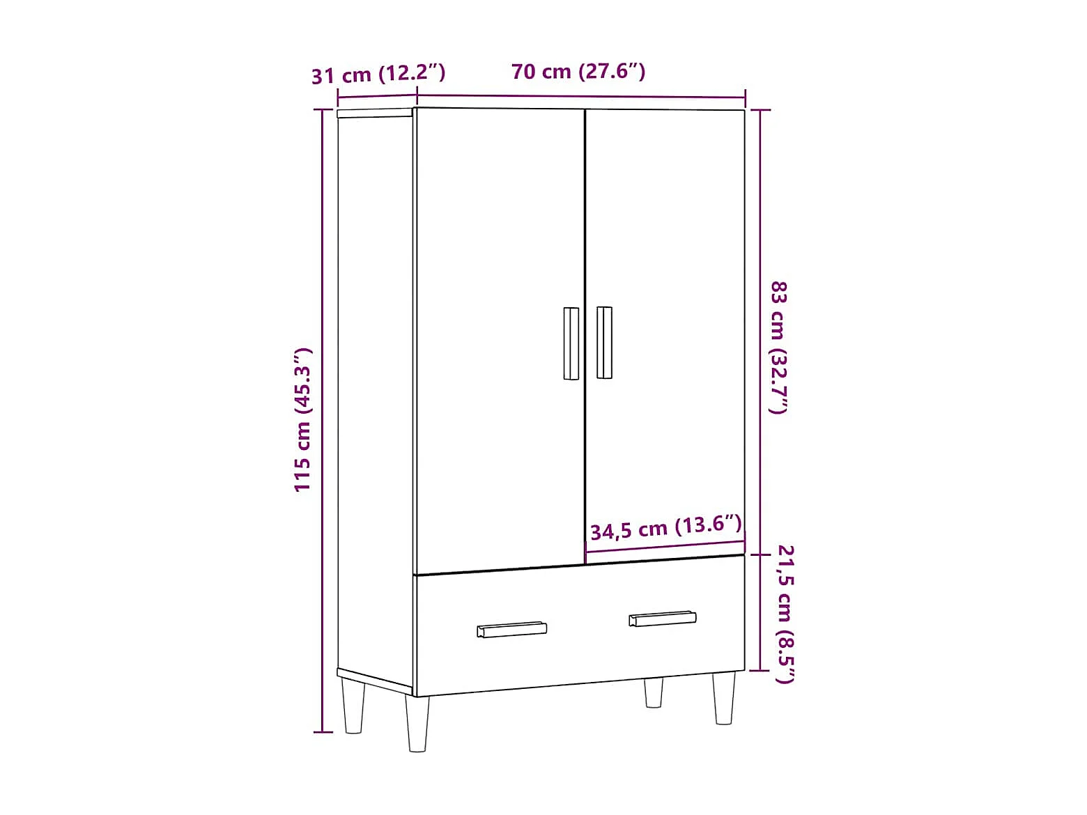 Hoge kast 69,5x31x115 cm bewerkt hout bruin eikenkleur