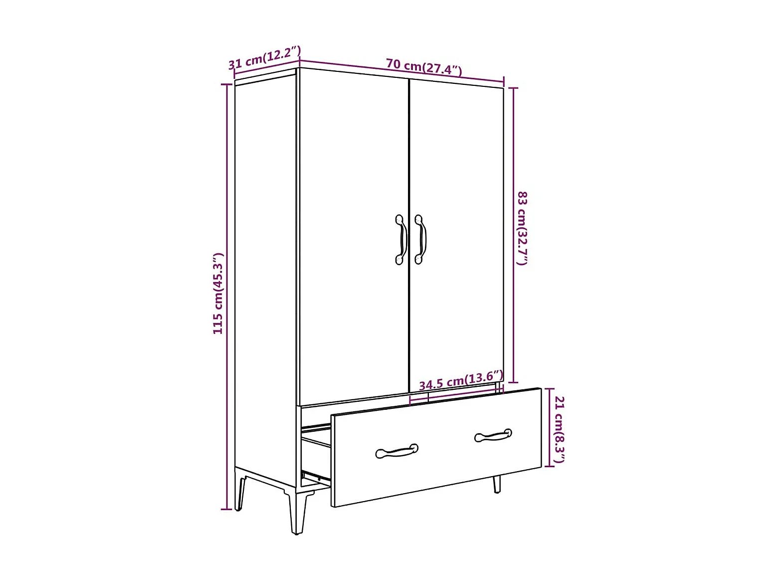 Hoge kast 70x31x115 cm bewerkt hout zwart