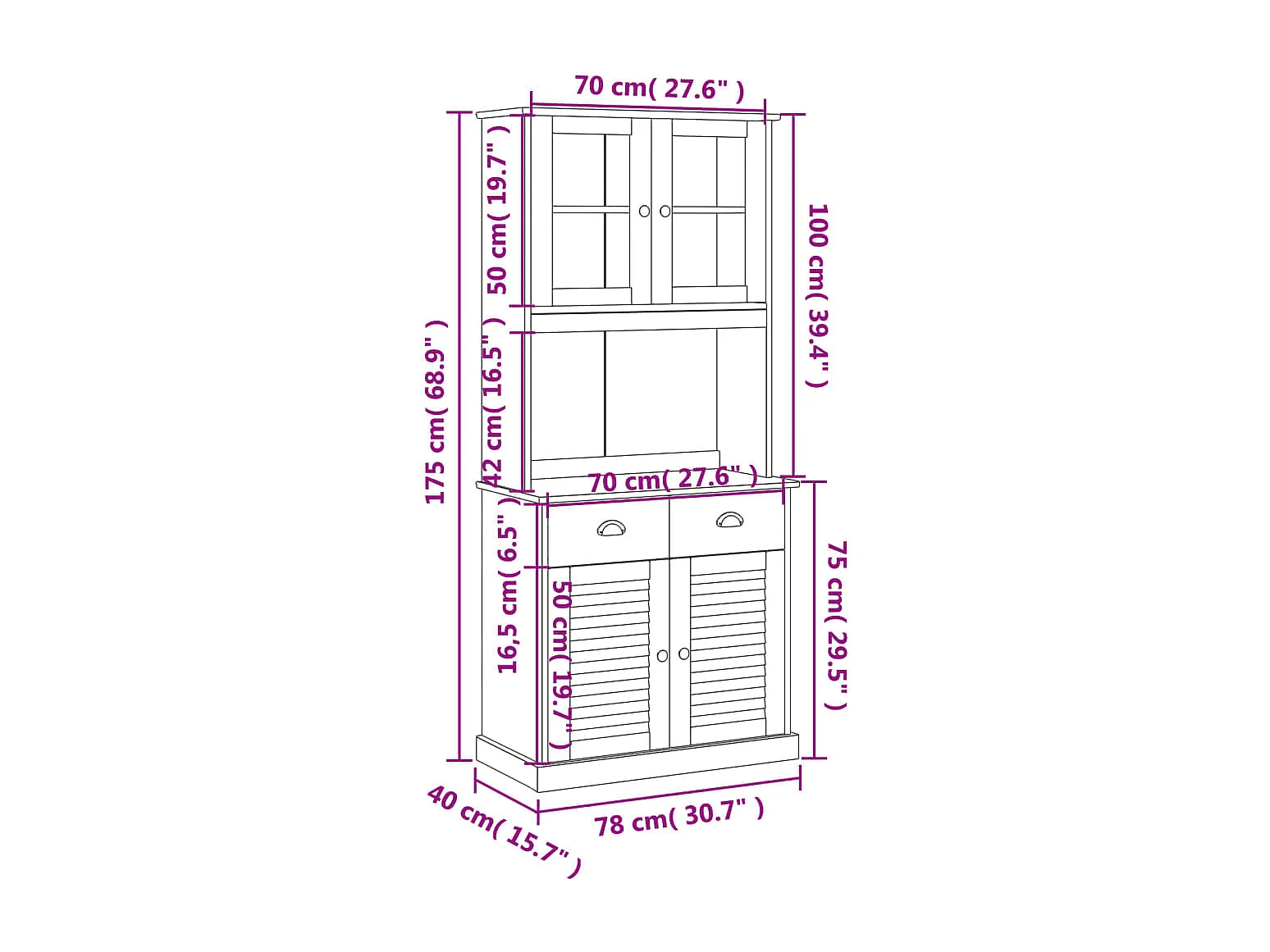 Hoge kast VIGO 78x40x175 cm massief grenenhout