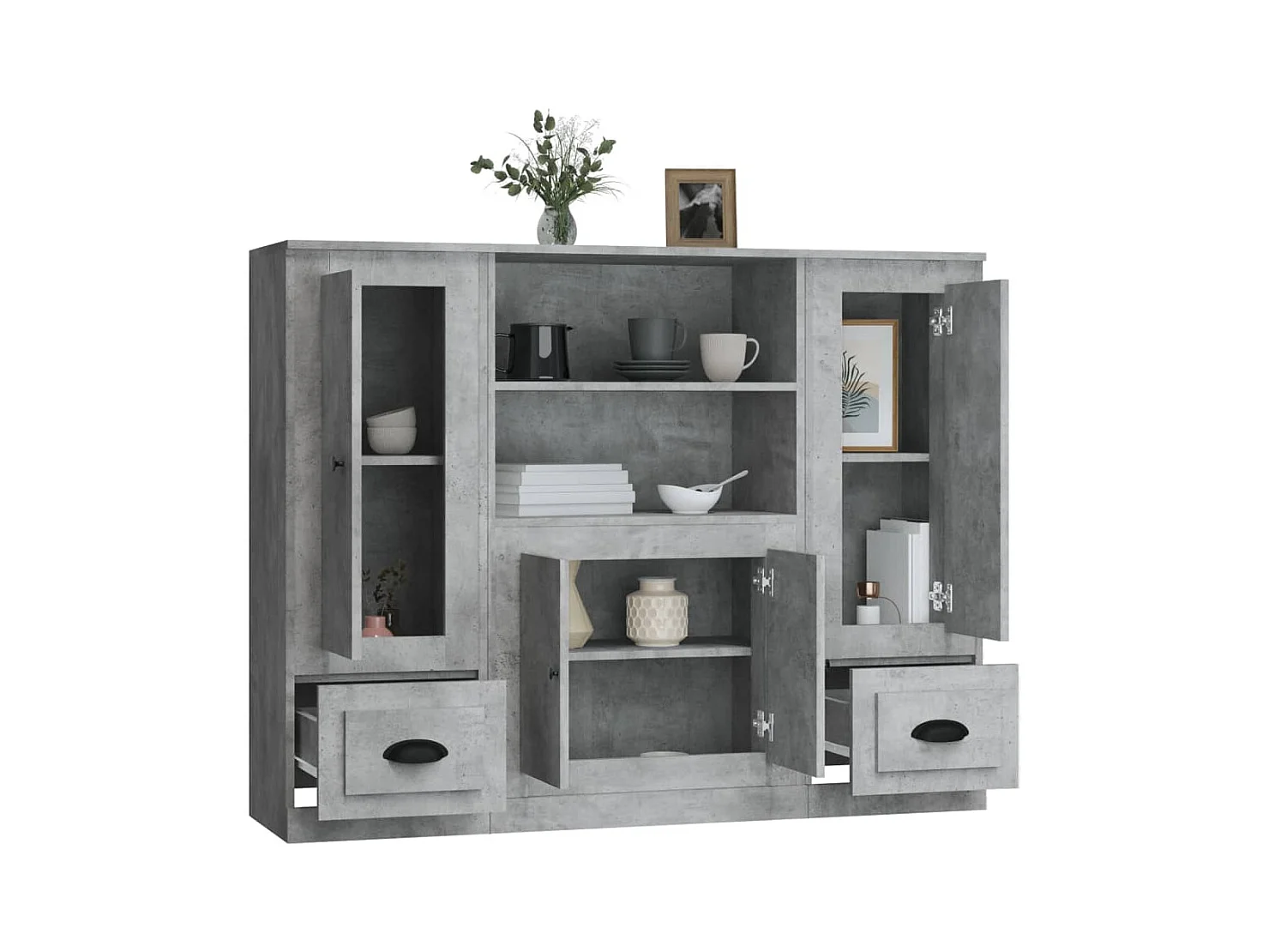 3 st Dressoirs bewerkt hout betongrijs