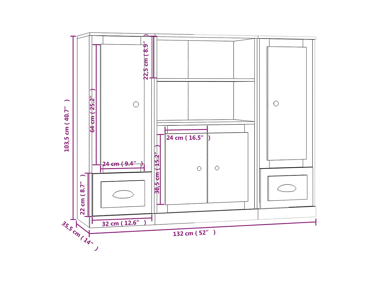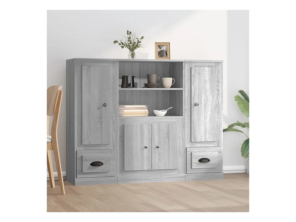 3 st Dressoirs bewerkt hout grijs sonoma eikenkleurig