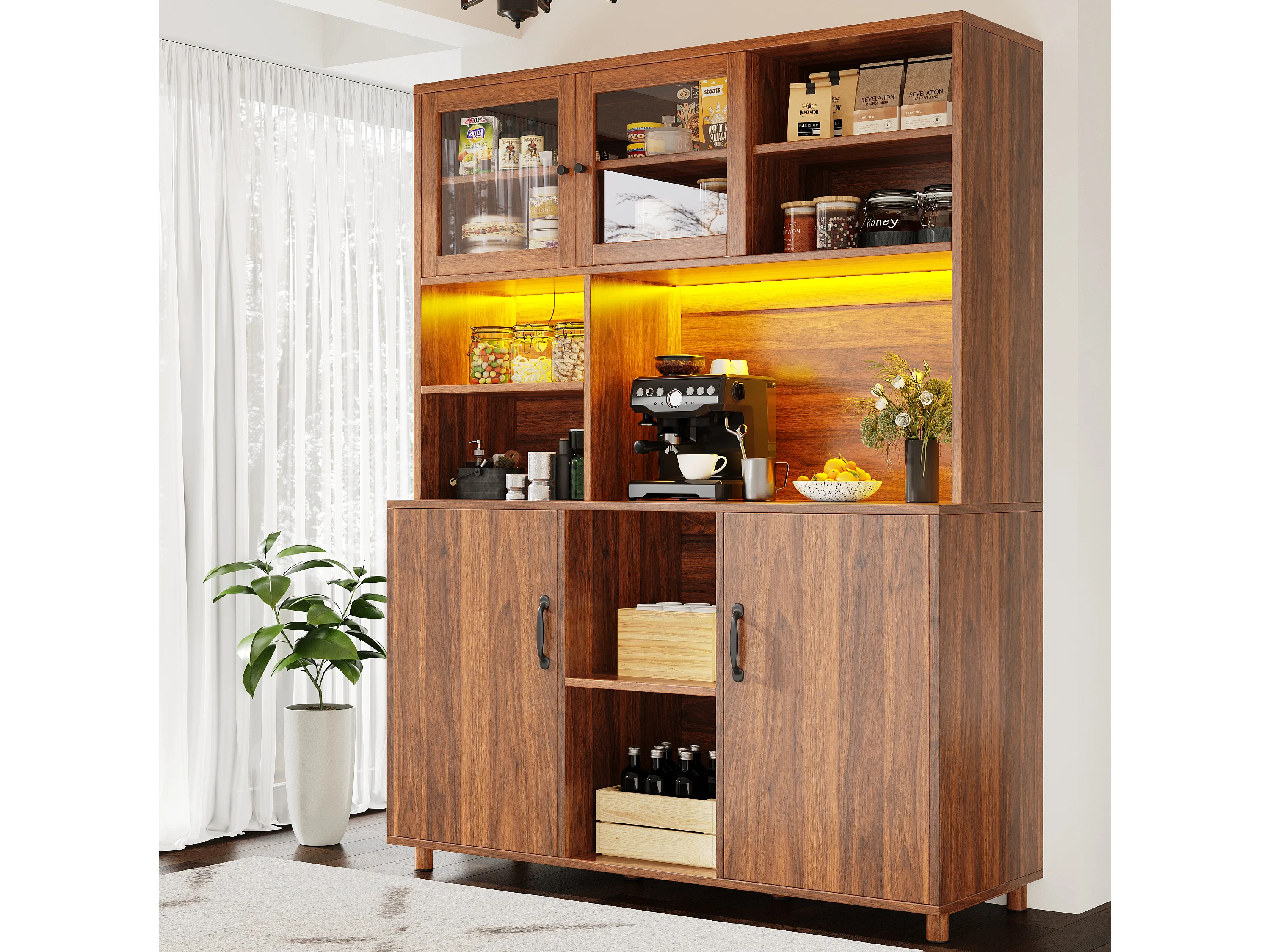 Hoge keukenkast 120x40x185cm - 2 deuren - met LED-verlichting - hoge kast - multifunctioneel buffet - ​​Bruin​