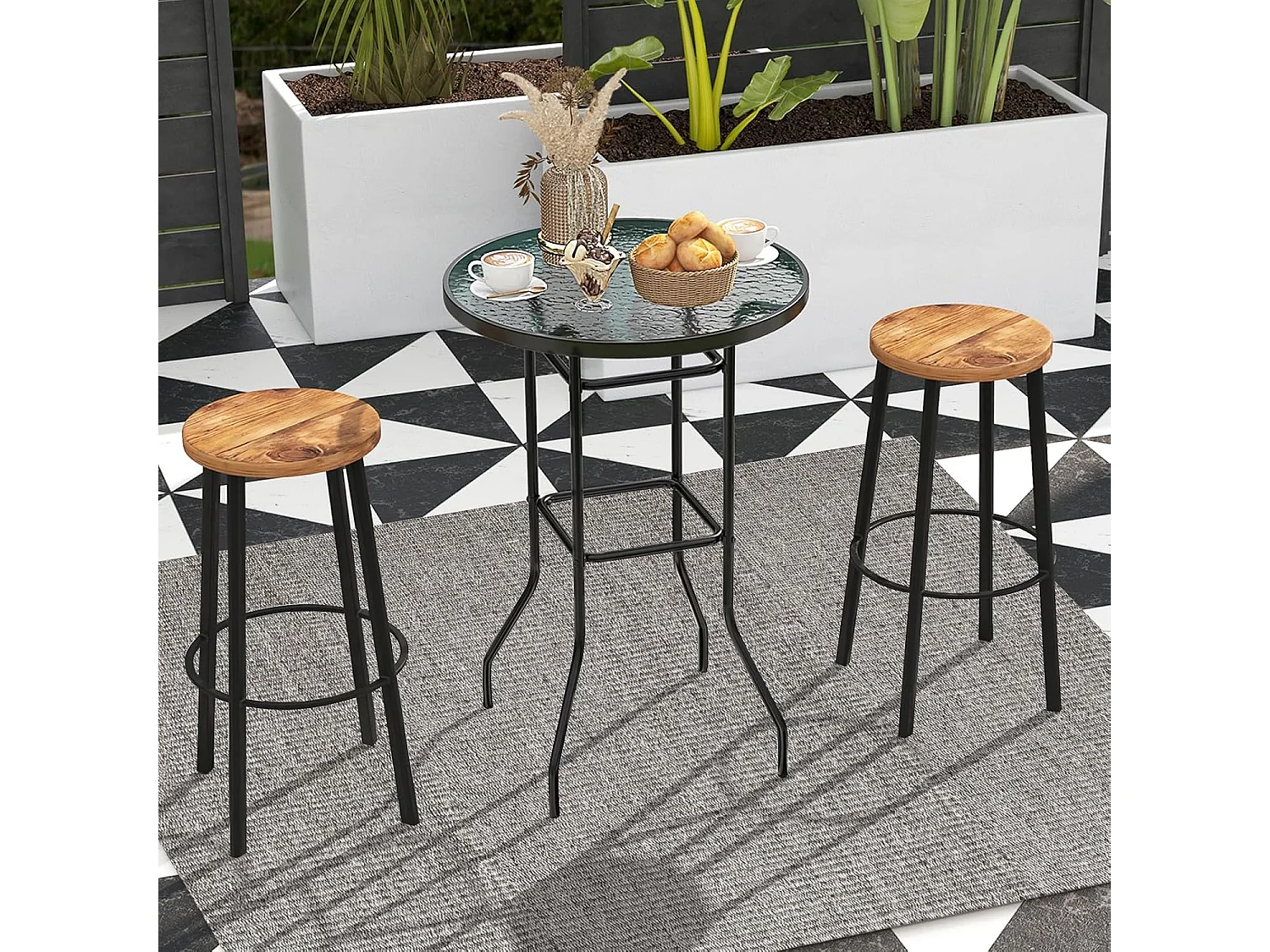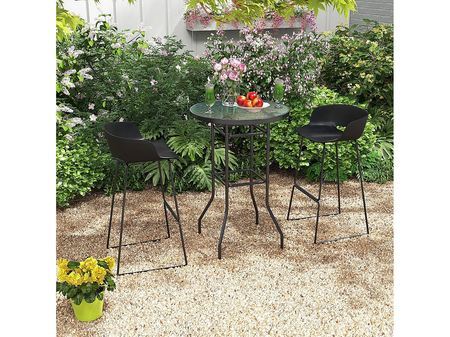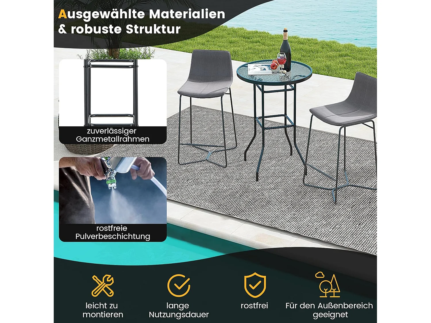 Hoge tuintafel, statafel, ronde bistrotafel met tafelblad van gehard glas, bartafel voor terras, binnenplaats, zwembad, 68 x 68 x 97 cm