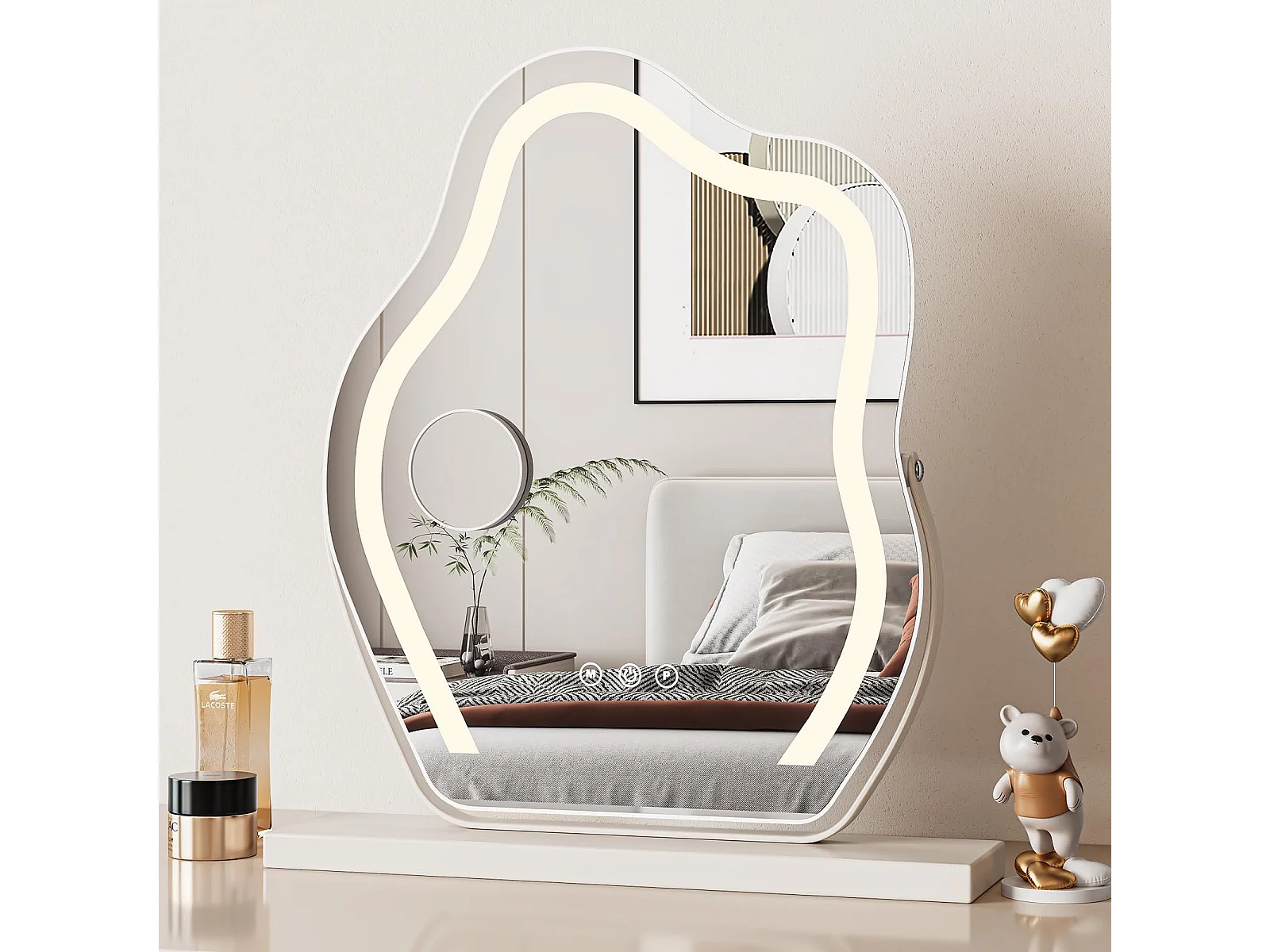 Hollywood Cloud LED make-upspiegel, 58x50cm, 180° draaibaar, 3 standen, instelbare helderheid, touchbediening, ideaal voor de kaptafel, wit