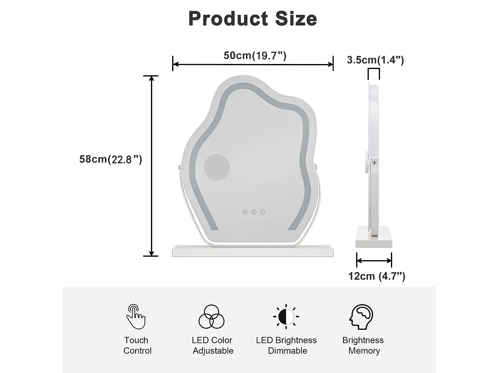 Hollywood make-upspiegel 14 LED's, 50x42cm, 3 standen, Verstelbare helderheid, Touchbediening, Ideaal voor kaptafel, Tafelmontage, Zwart