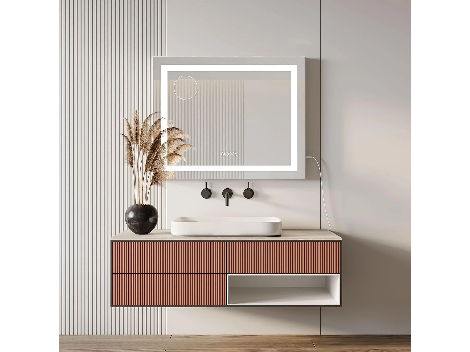 60x80cm LED badkamerspiegel, 30W, anticondens, 3 kleuren, dimbaar, aanraakschakelaar, explosieveilig, geheugenfunctie, IP44 waterdicht