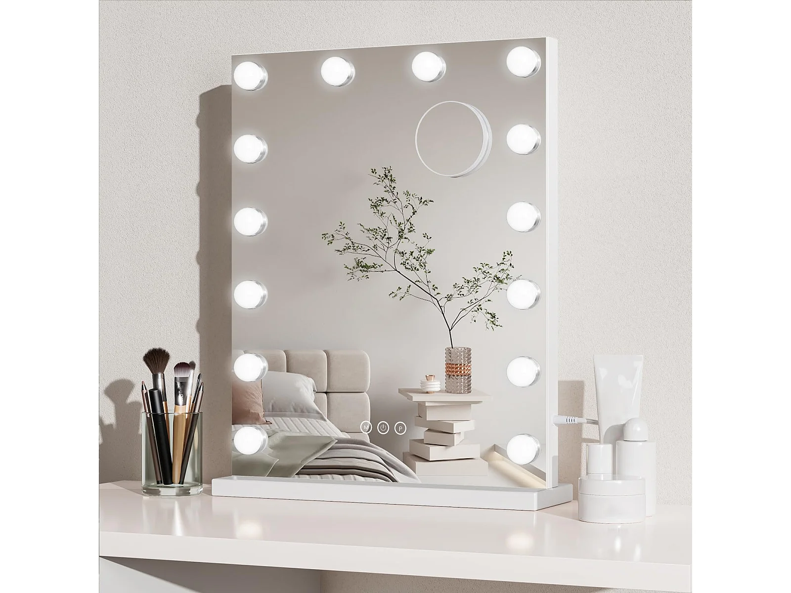 Hollywood LED make-upspiegel, 40x50cm, 3 standen, instelbare helderheid, touchbediening, geschikt voor tafel- of wandmontage, ideaal voor de kaptafel, wit