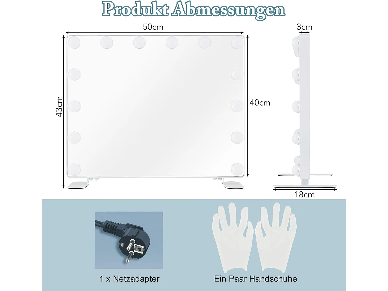 Make-up Spieghel SucceBuy 58 x 46 cm, Wit, Hollywood-stijl Hofelijkheidsspiegel met Verlichting
