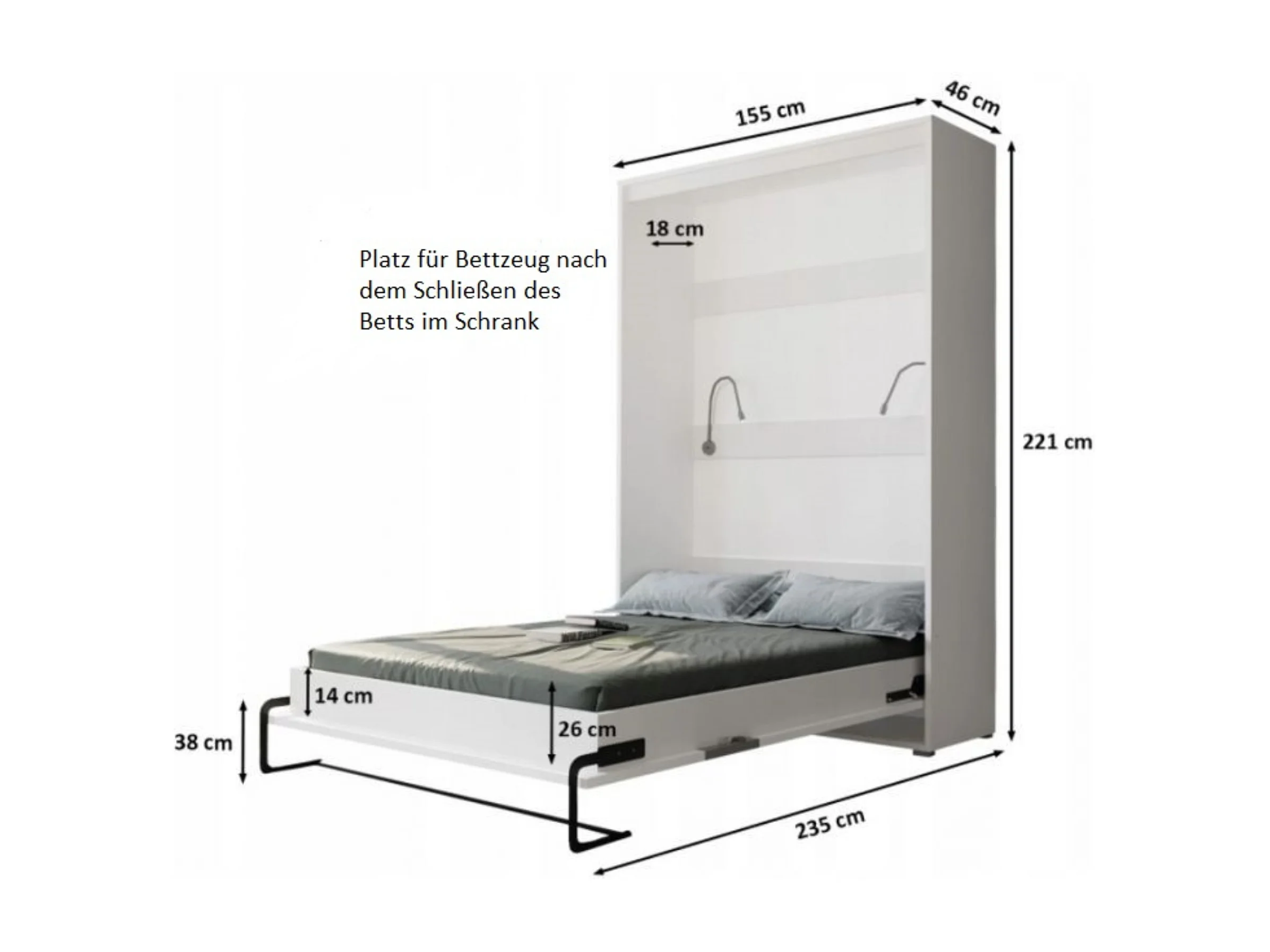 Home verticaal opklapbed 140x200 (Wit/Zwart)