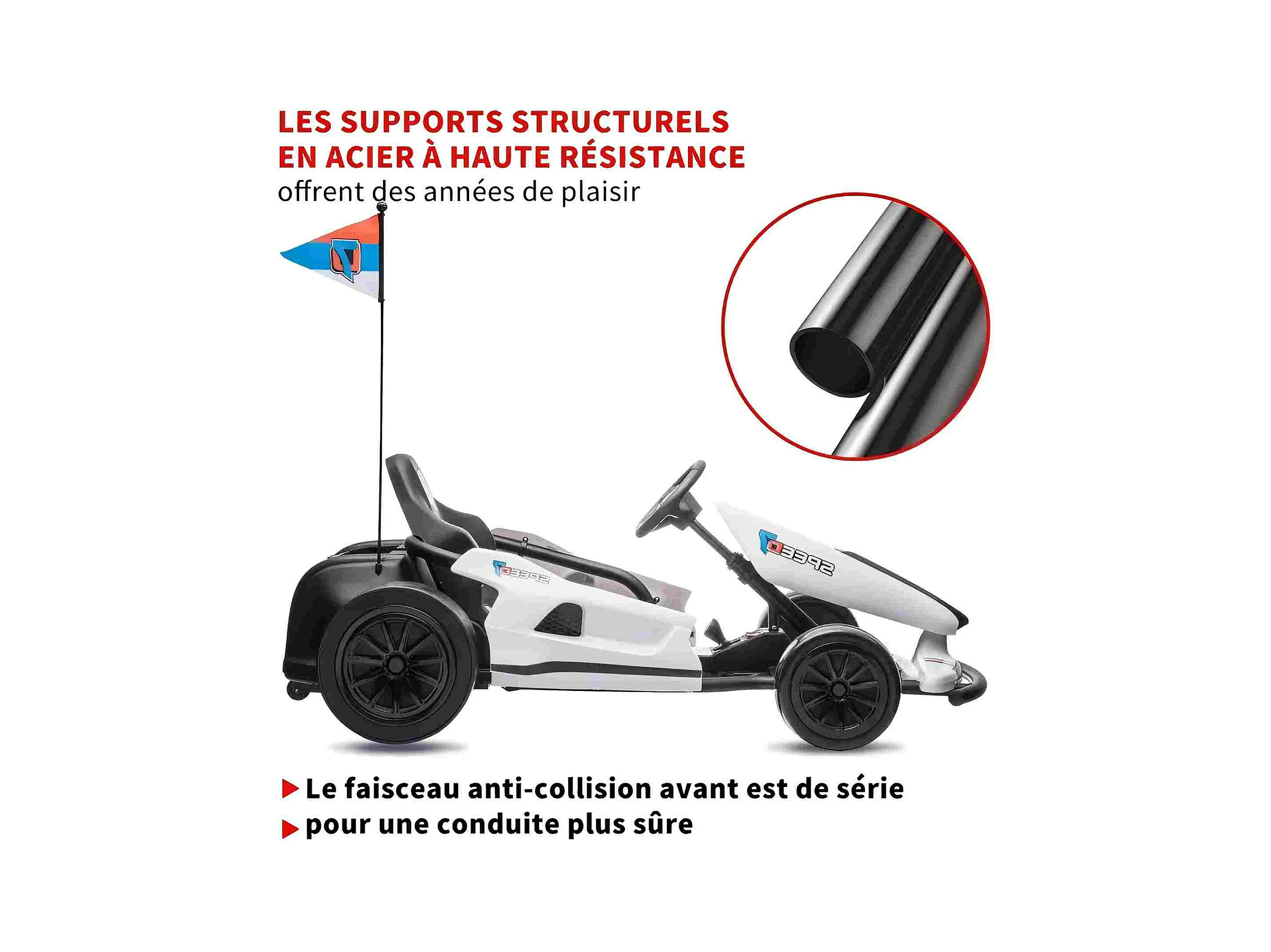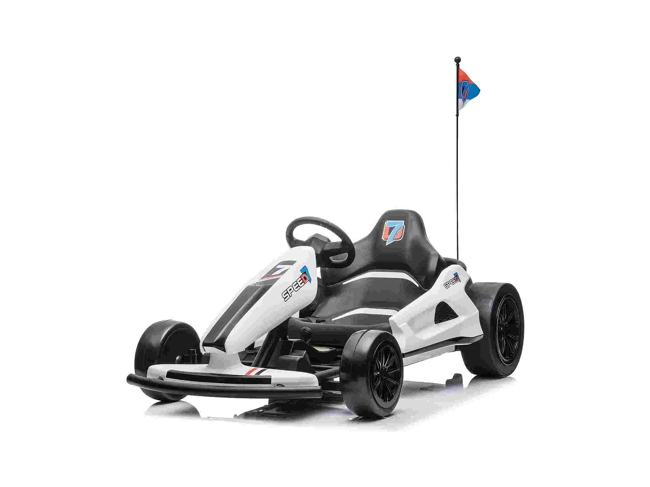 HOMEMiYN 24V 13 km/u elektrische driftkart met zachte start, muziek, claxon, veiligheidsgordel voor kinderen van 8-12 jaar (wit).