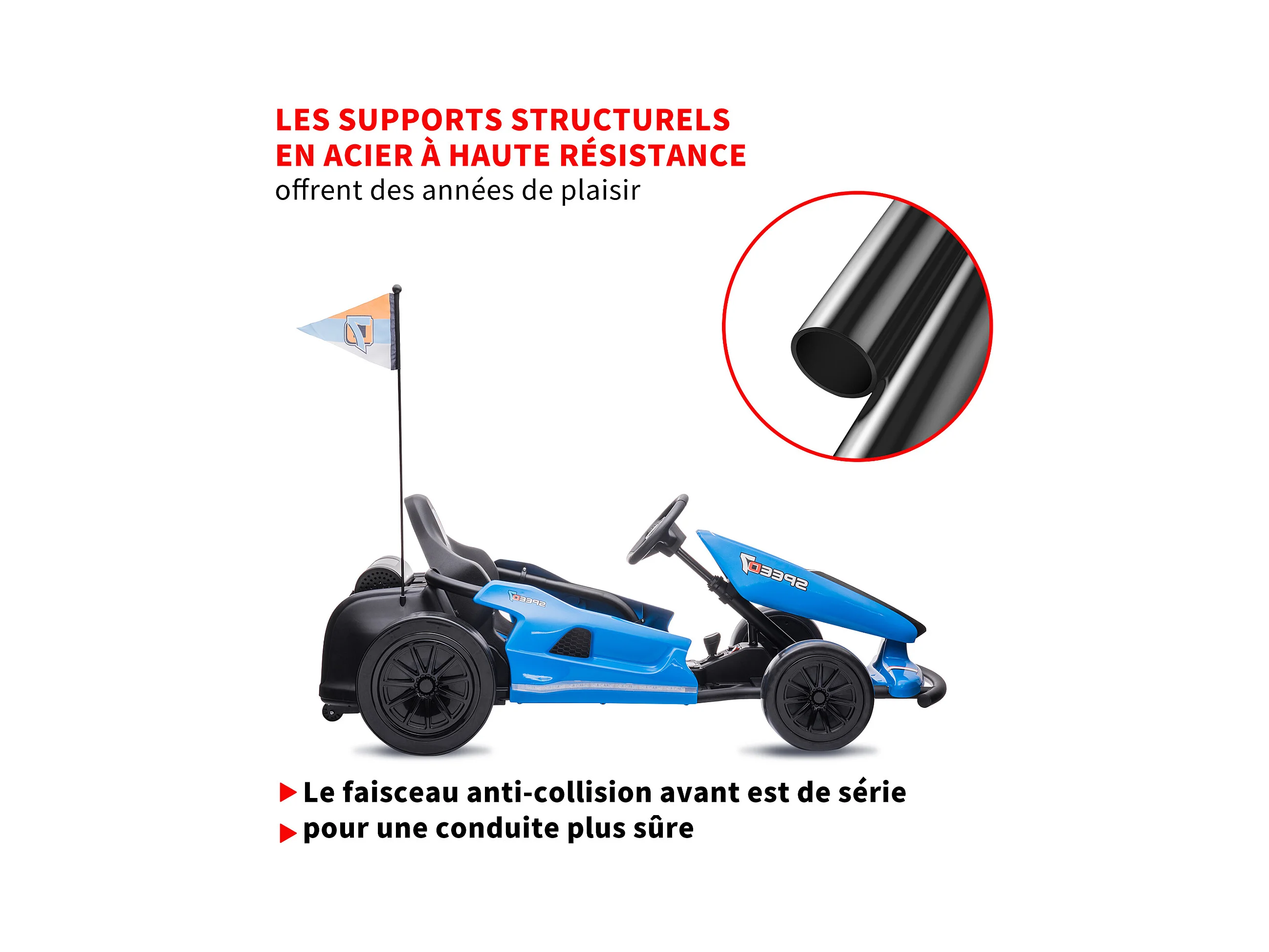 HOMEMiYN 24V 13 km/u elektrische driftkart met zachte start, muziek, claxon, veiligheidsgordel voor kinderen van 8-12 jaar (rood).