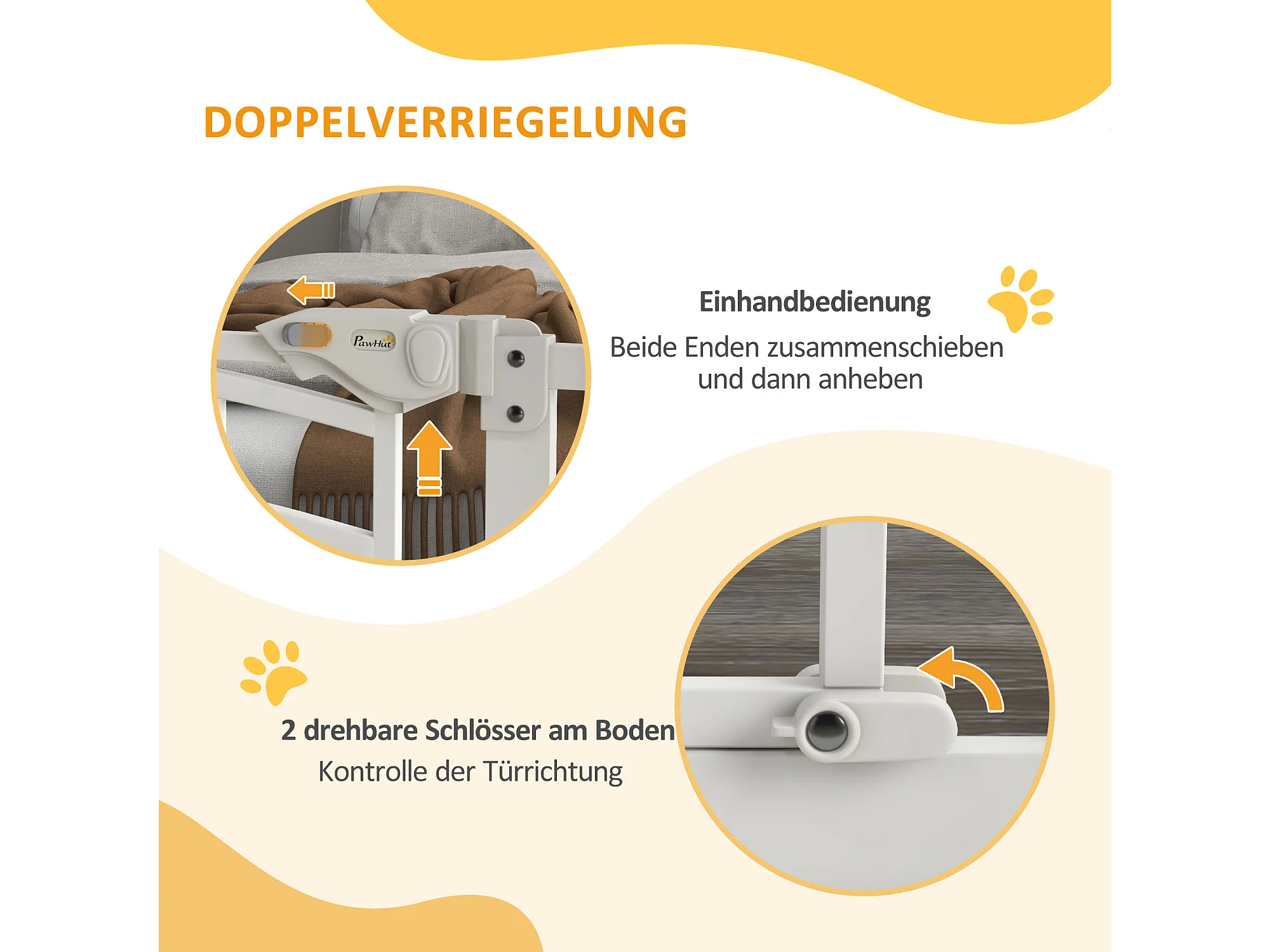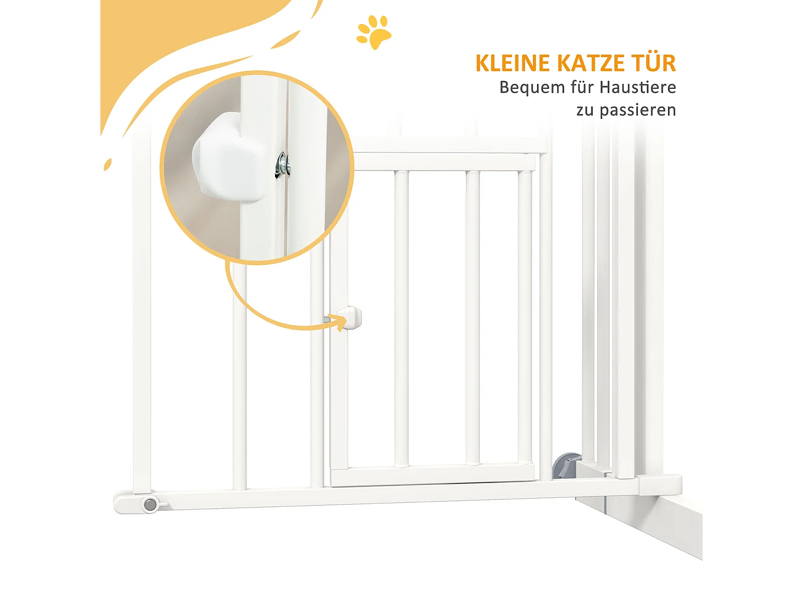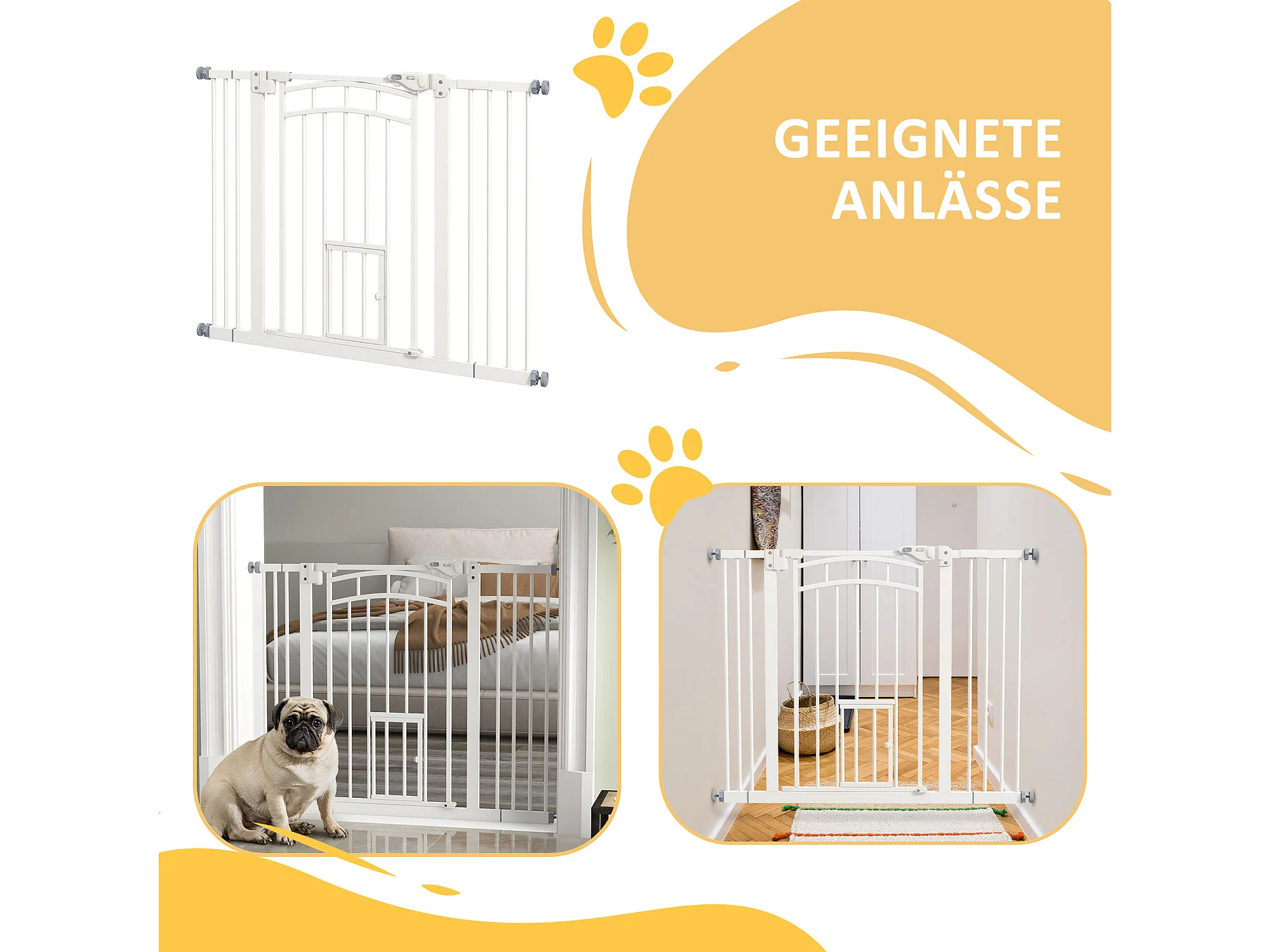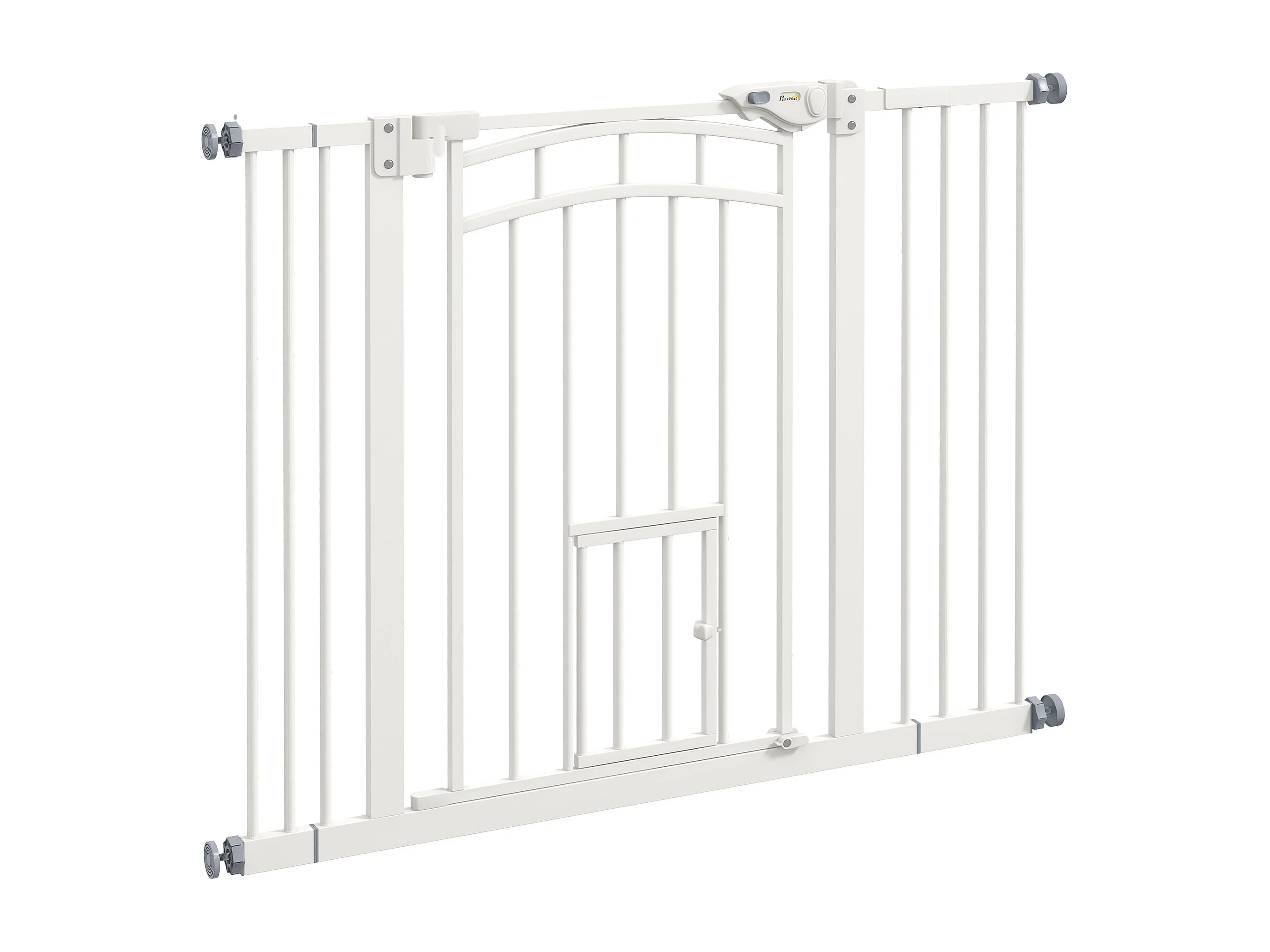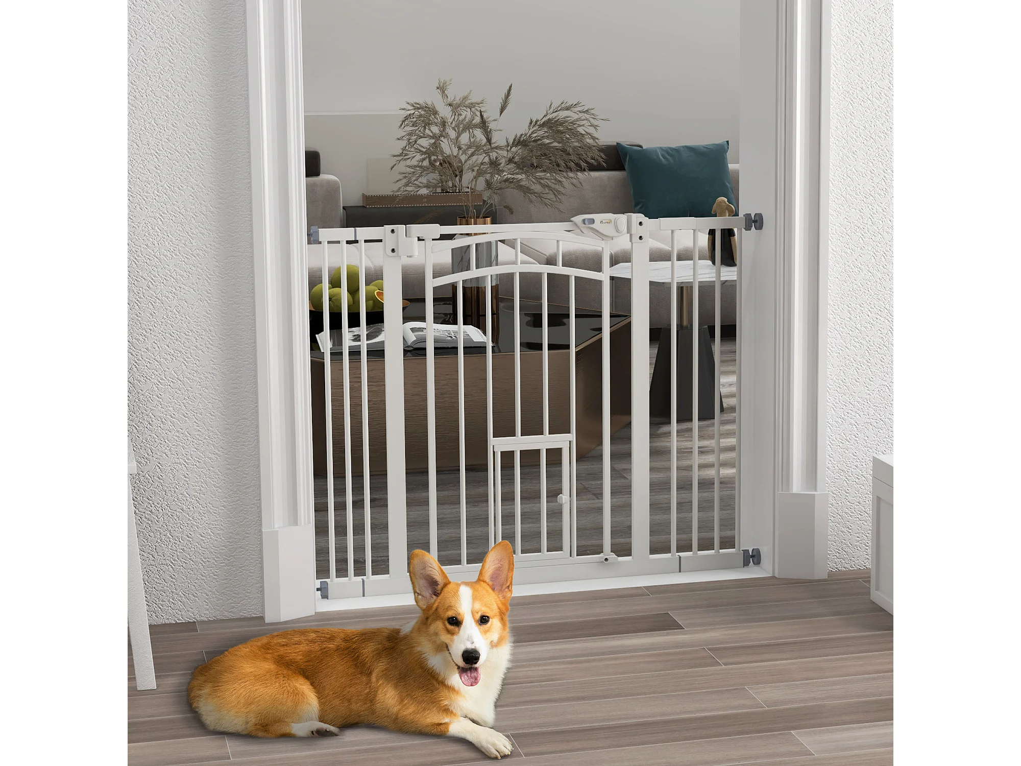 Hondenhek met automatische deur en kattenluik, staal, wit (74-100x4x76 cm)