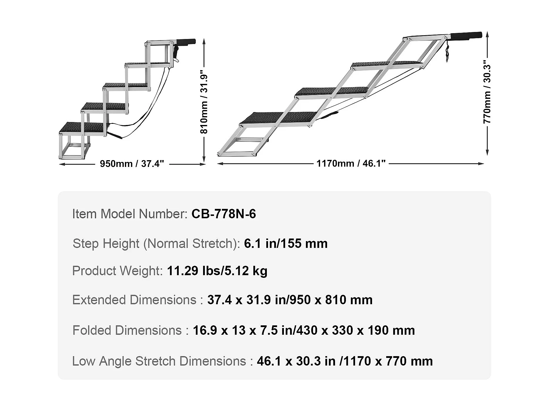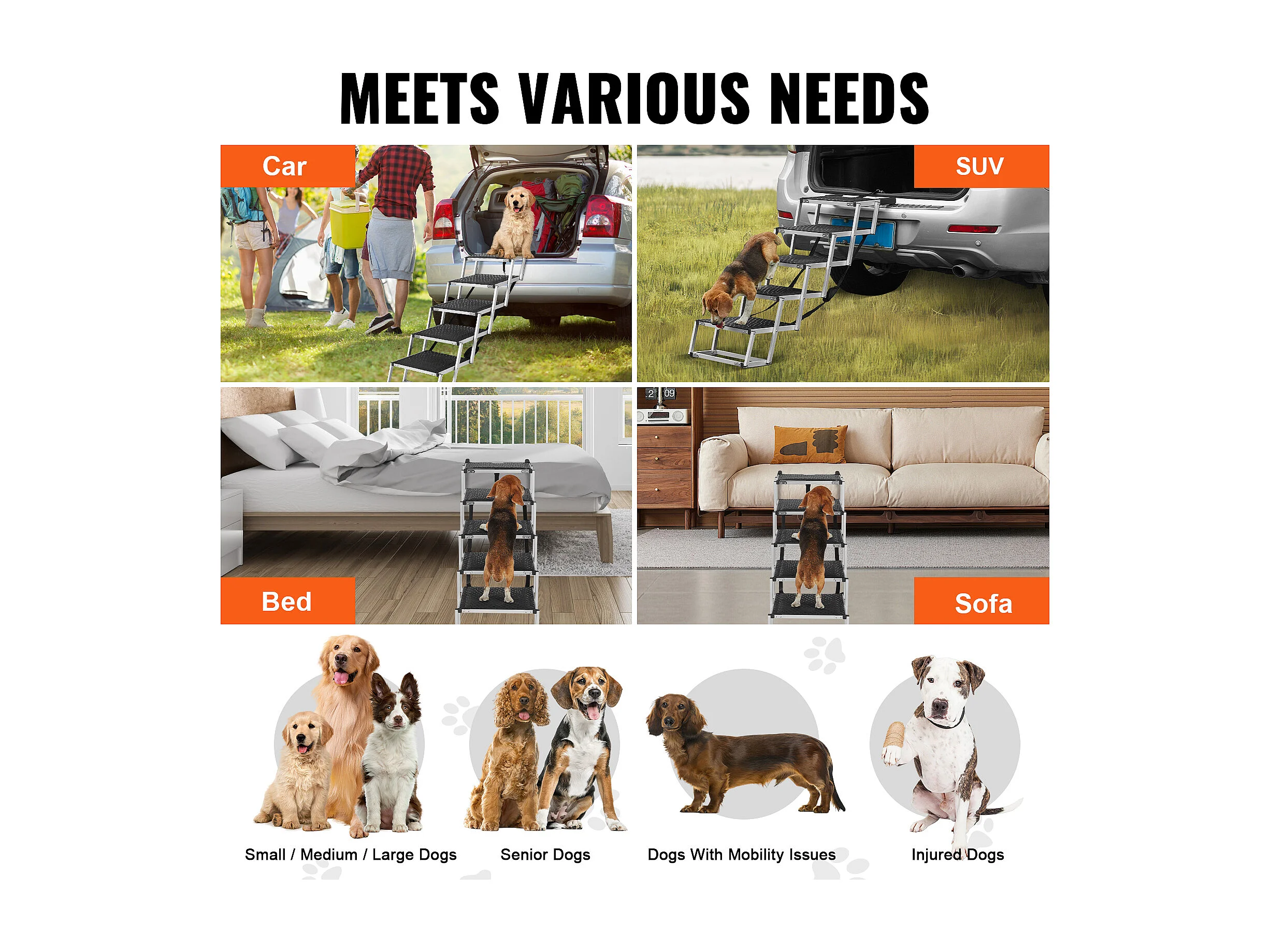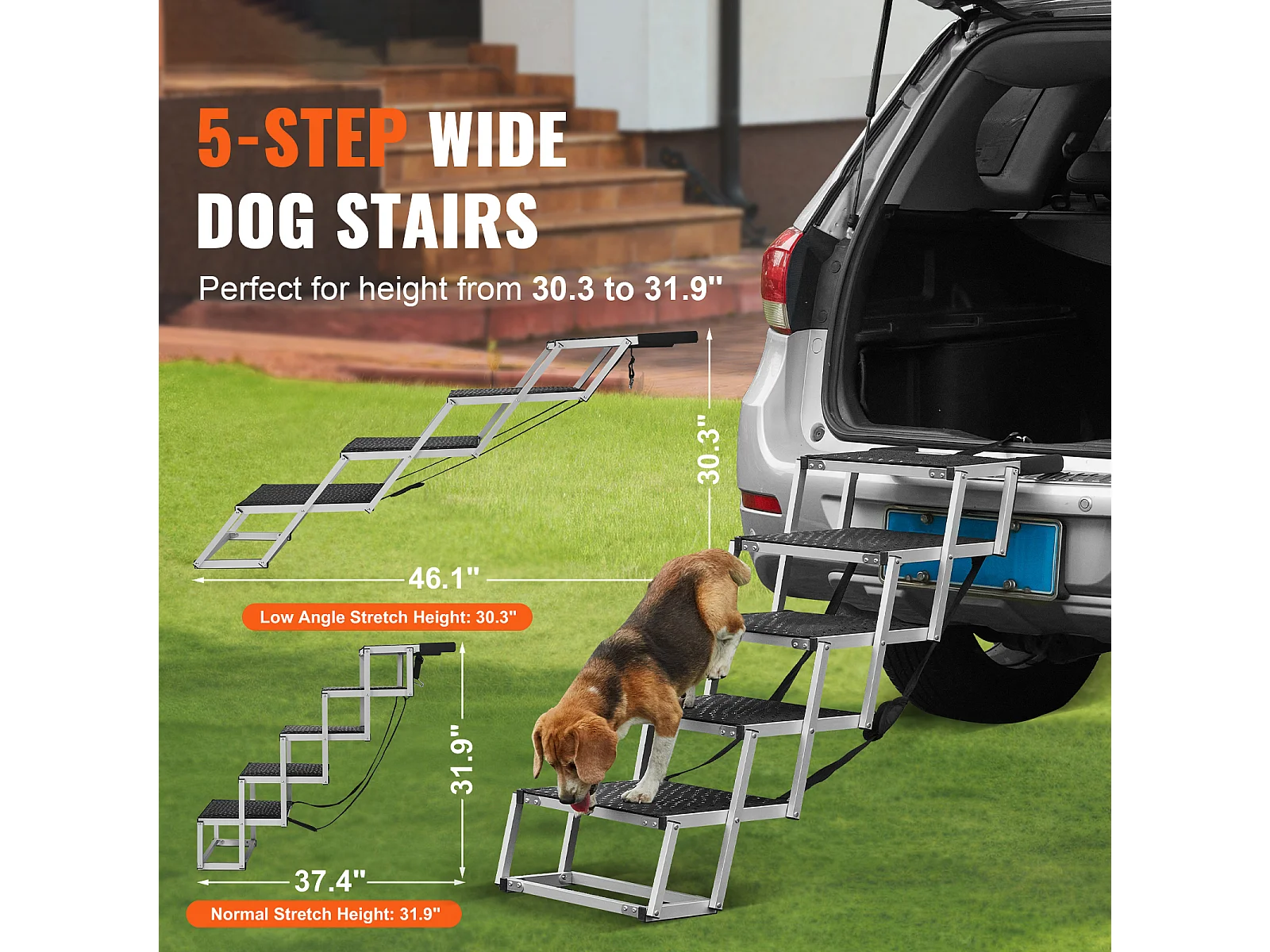 Hondentrap, SucceBuy Hondentrap voor Auto's 5 Treden Opvouwbaar 68 kg Aluminium