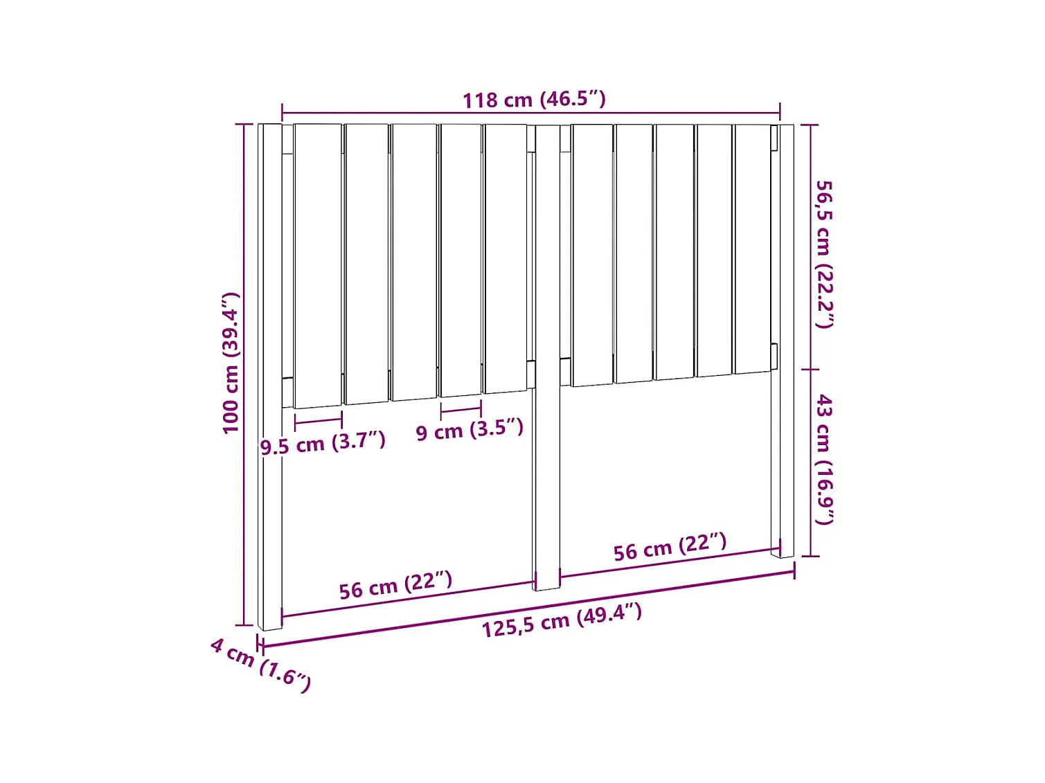 Hoofdbord 125,5x4x100 cm massief grenenhout
