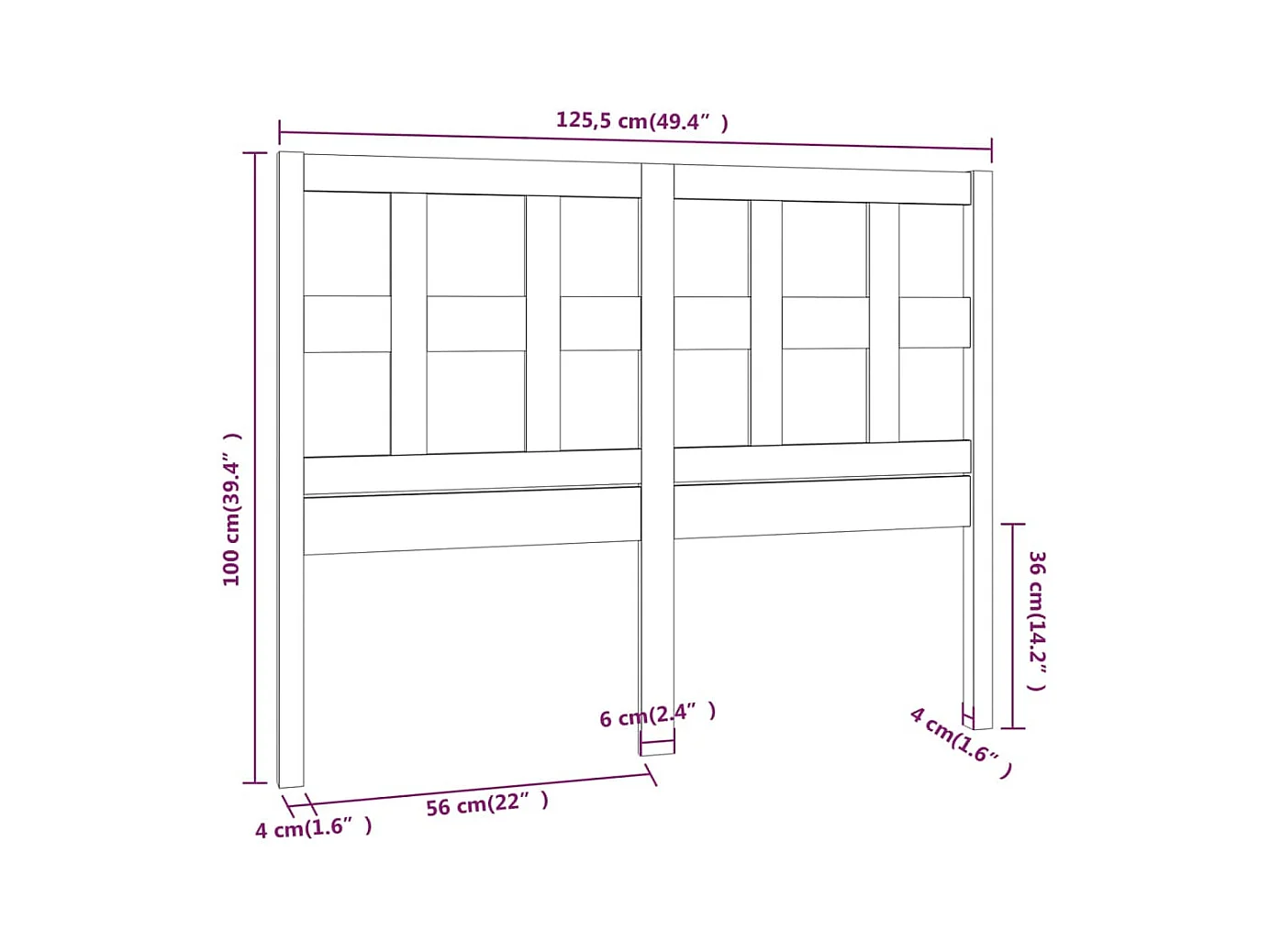 Hoofdbord 125,5x4x100 cm Massief grenenhout