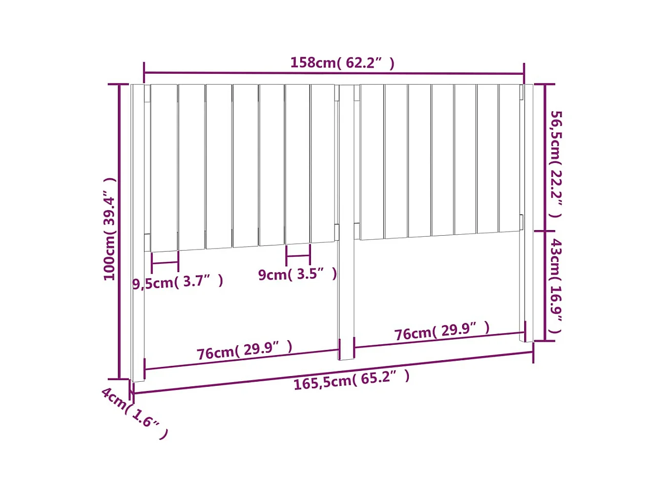 Hoofdbord 165,5x4x100 cm massief grenenhout zwart