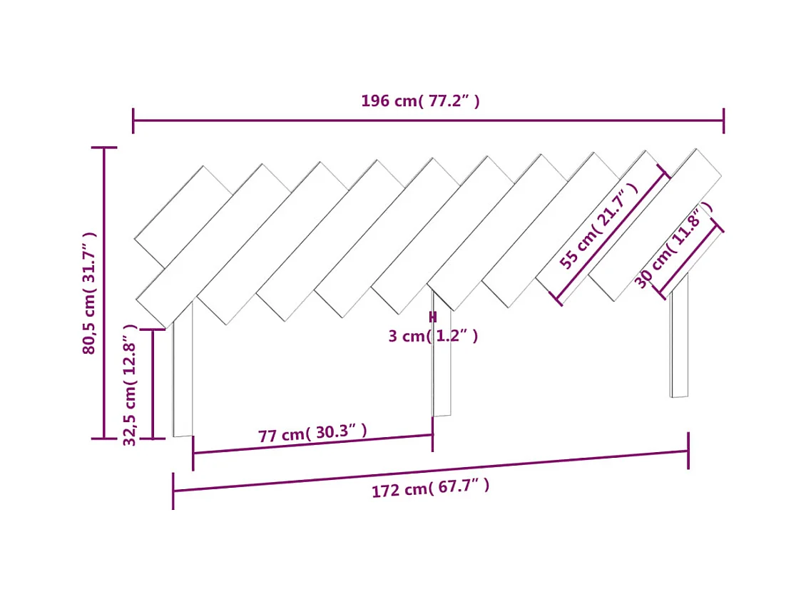 Hoofdbord 196x3x80,5 cm Massief grenenhout