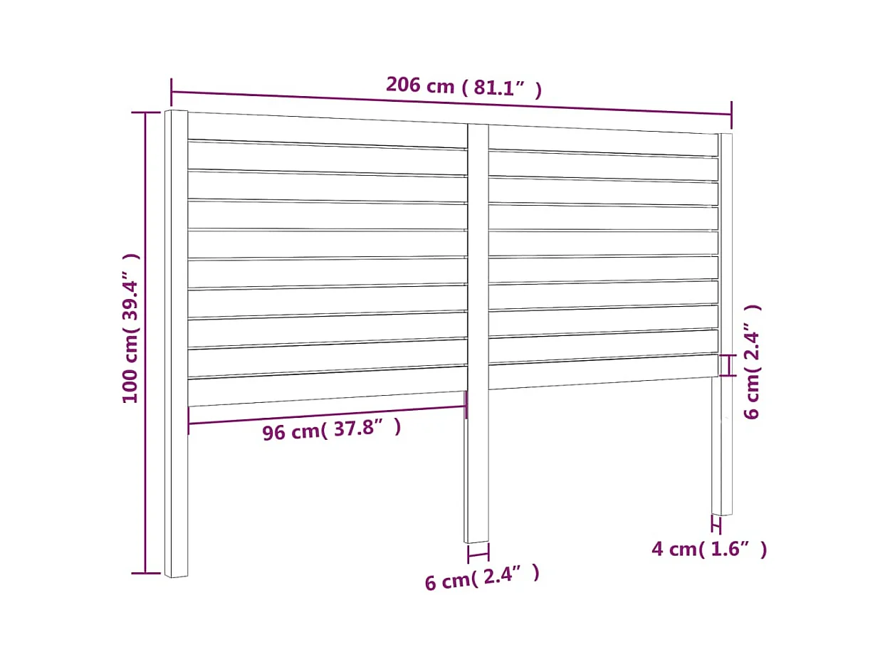 Hoofdbord 206x4x100 cm massief grenenhout