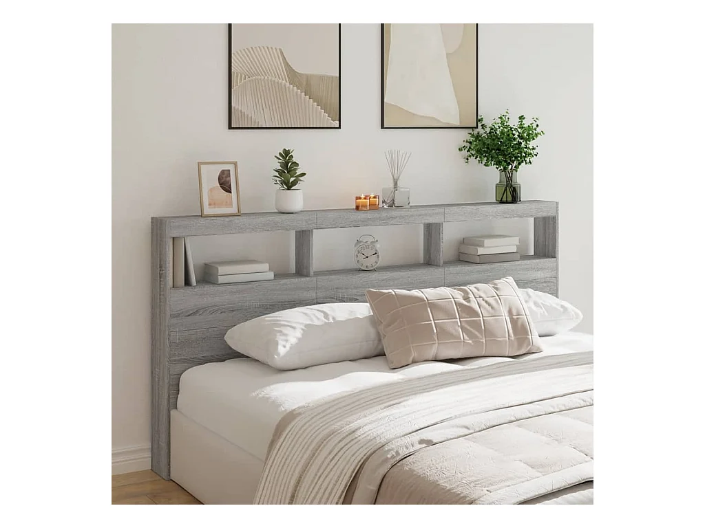 Hoofdbord met LED Sonoma Grey 180x17x102 cm